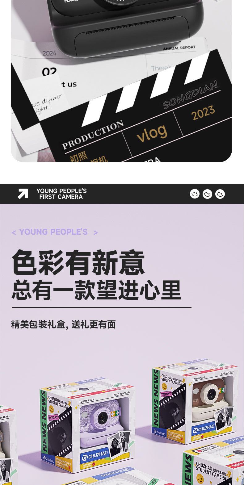 인기 있는 어린이용 즉석 카메라는 사진을 찍고 고화질 디지털 카메라를 인쇄할 수 있습니다. 어린이 장난감 도매 직접 판매스토어 가기