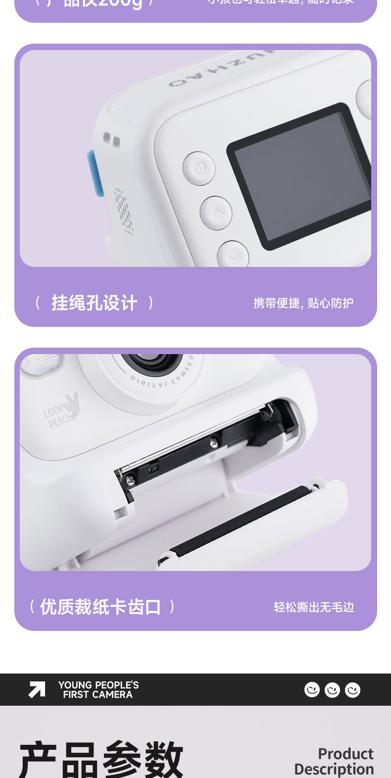 • 보라색 2.0inch 사진 촬영 및 인쇄 용지 - 32G 메모리(인쇄 용지 3롤 포함)