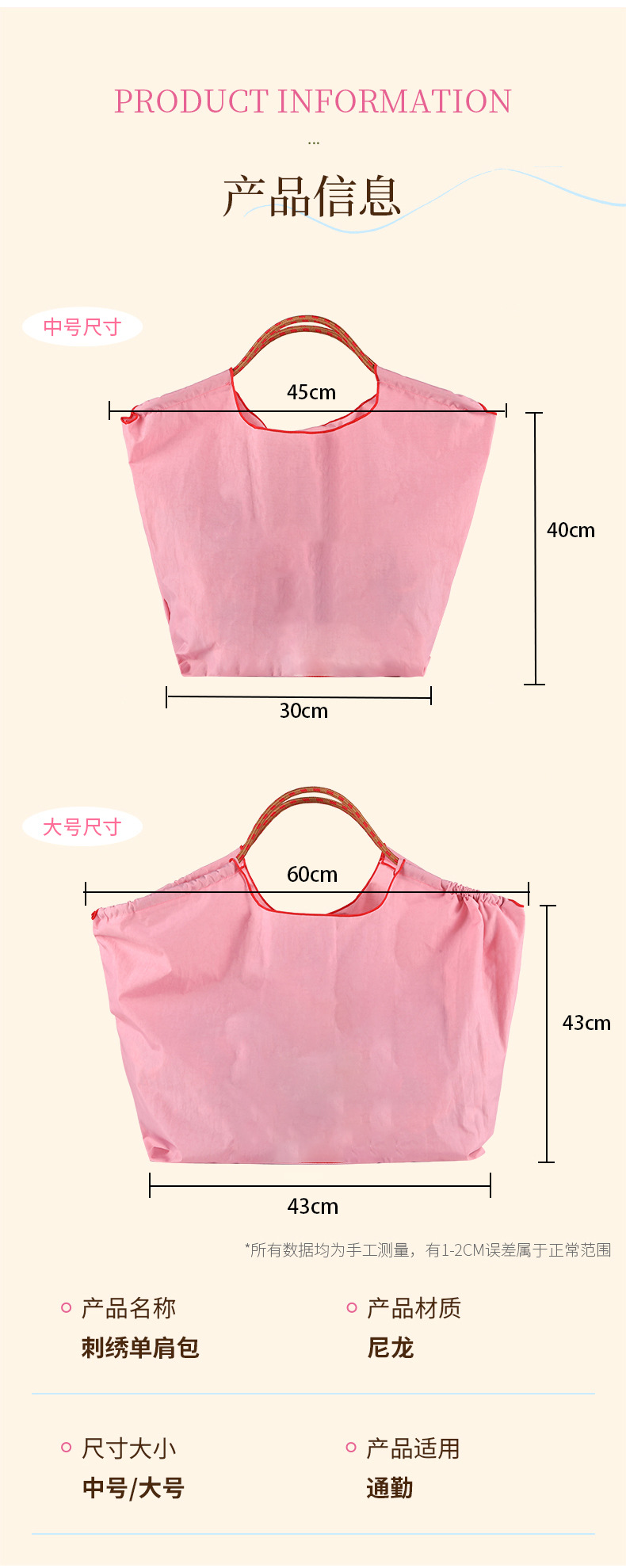공장 직접 판매 일본 자수 가방 볼 체인 나일론 숄더백 타기 가방 여성 크로스 바디 토트 백