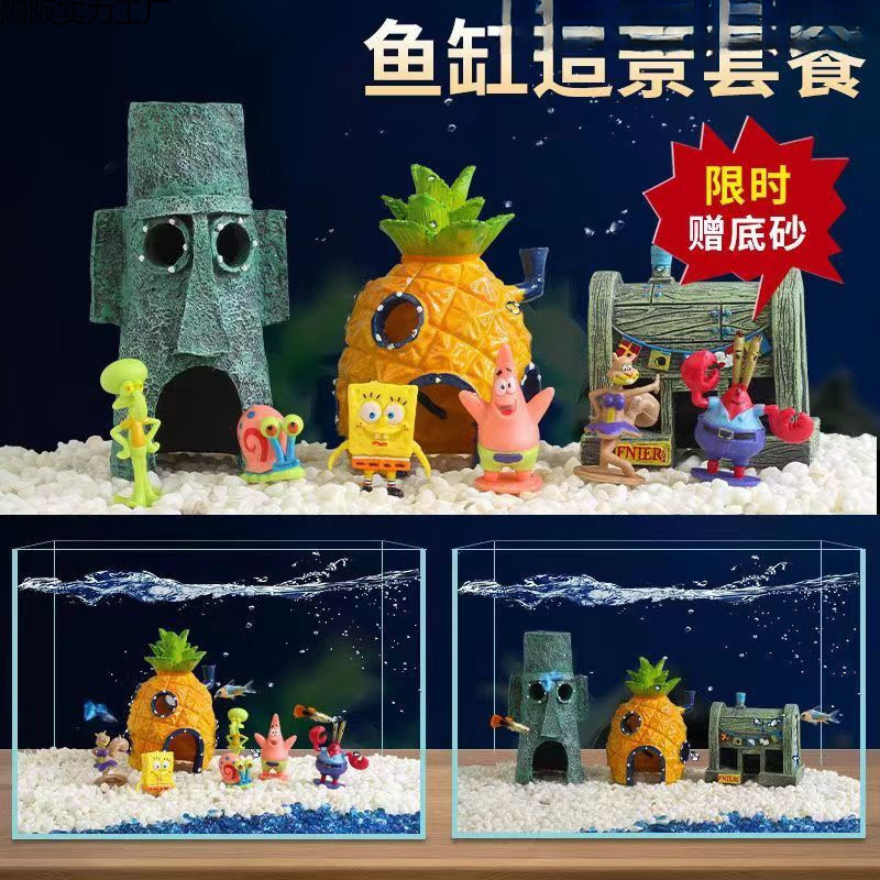 수조 파인애플 하우스 조경 장식 장식품 수족관 만화 인형 하우스 장식 패키지 스폰지 밥 피난처스토어 가기