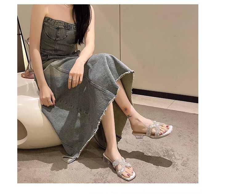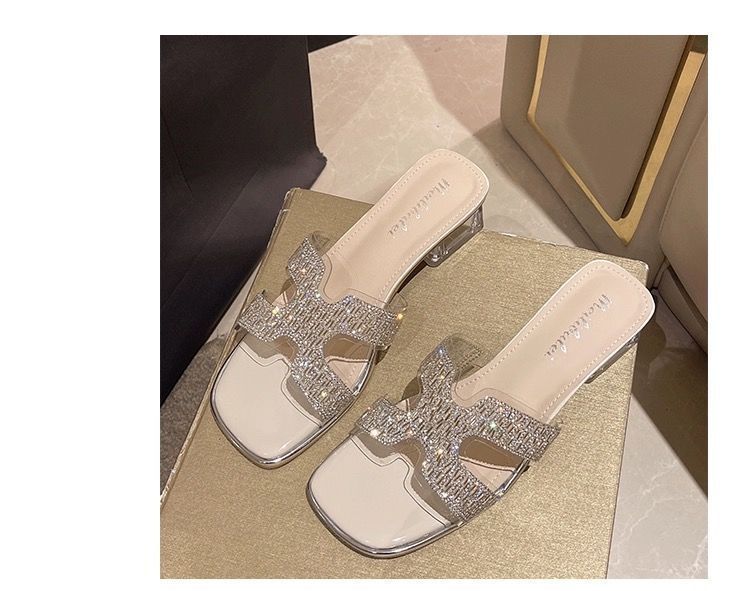 2025 여름 새로운 스타일 요정 스타일 여성용 슬리퍼, 다용도 크리스탈 두꺼운 굽 샌들, 여성용 패션 샌들스토어 가기