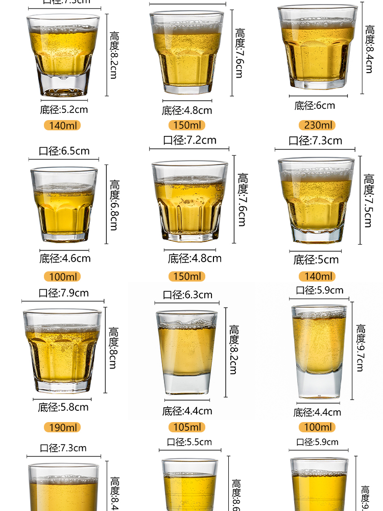 맥주잔 강화유리 컵 카피라이팅 상업용 팔각형 컵 호텔 0.1kg 와인잔 찻잔