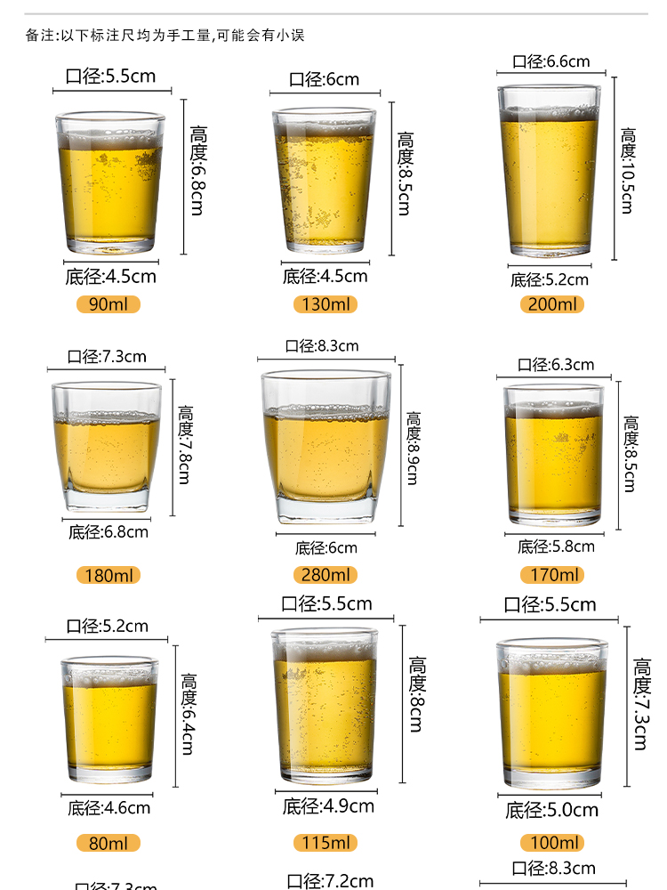 맥주잔 강화유리 컵 카피라이팅 상업용 팔각형 컵 호텔 0.1kg 와인잔 찻잔스토어 가기