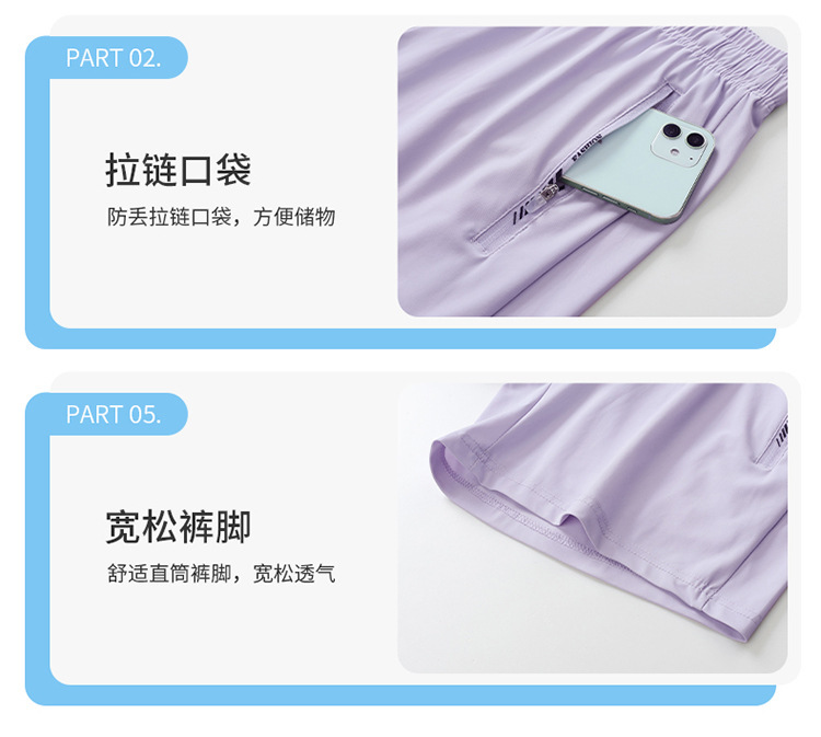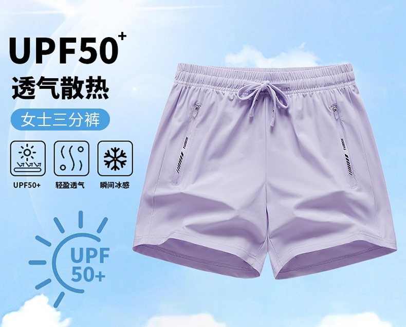 여름용 자외선 차단 3부 바지, 속건성, 통기성, 가볍고 얇은, 단색, 신축성, 루즈핏, 스포츠 캐주얼 바지, 여성용, 아이스 쿨링 효과