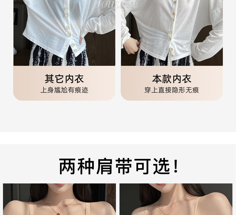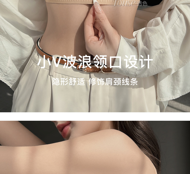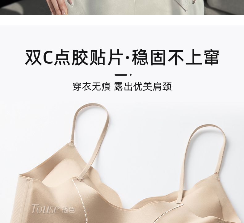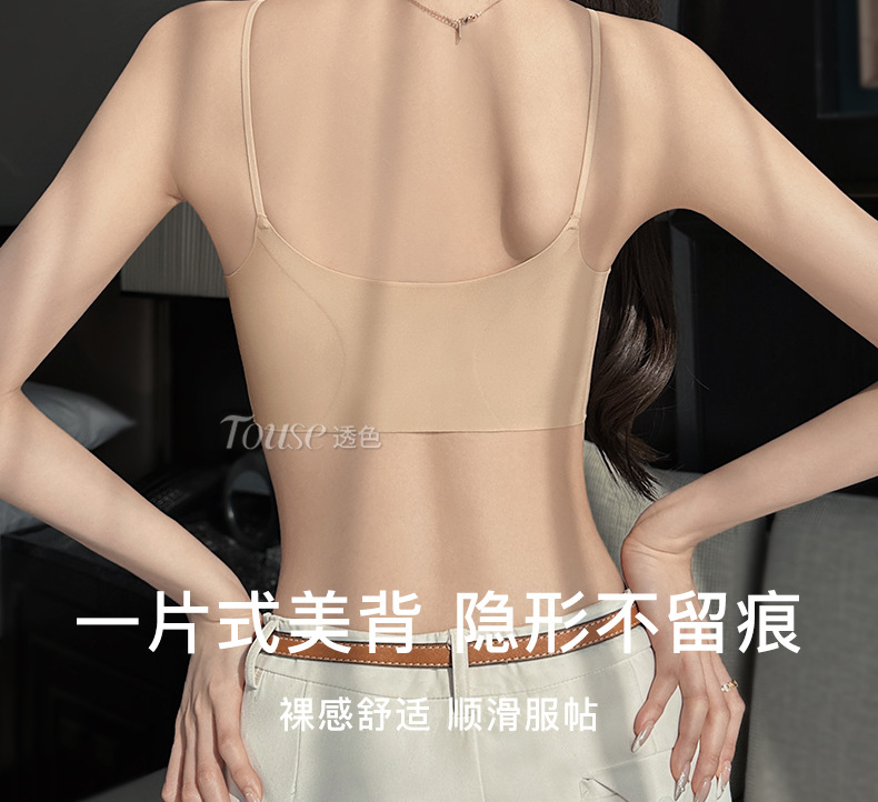 작은 가슴을 가진 여성을 위한 심리스 리퀴드 파운데이션 속옷, 여름용 얇은 조끼 스타일의 일체형 투명 스킨 컬러 스파게티 스트랩 브라스토어 가기