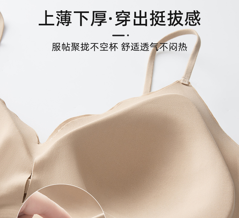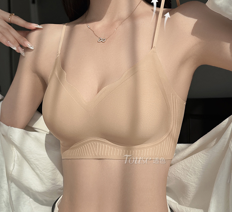 작은 가슴을 가진 여성을 위한 심리스 리퀴드 파운데이션 속옷, 여름용 얇은 조끼 스타일의 일체형 투명 스킨 컬러 스파게티 스트랩 브라