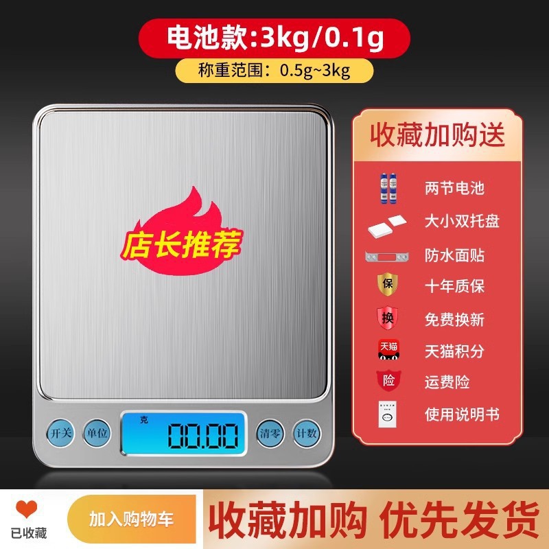 • 충전식 3가지 용도 3kg/0.1g 이중 트레이 + 방수 스티커 8가지 선물✦☆