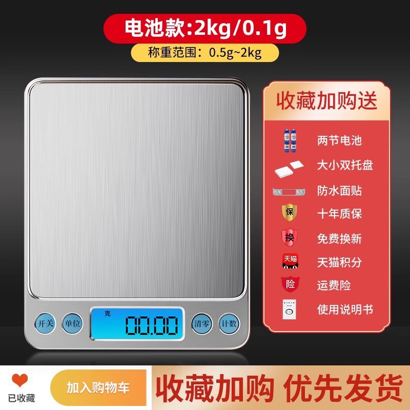 • 고급 배터리형 백라이트 저울 / 2kg / 0.1g, 추 + 이중 트레이 + 9가지 특별 선물 증정✦☆