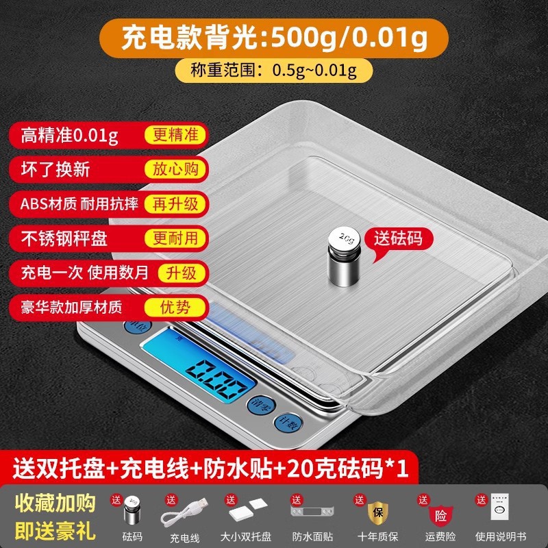 • 충전식 백라이트/500g/0.01g에는 트레이 2개 + 충전 케이블 + 8가지 선물이 함께 제공됩니다.✦☆
