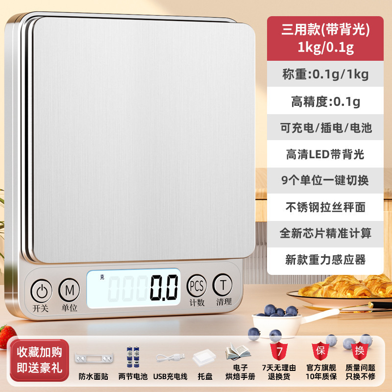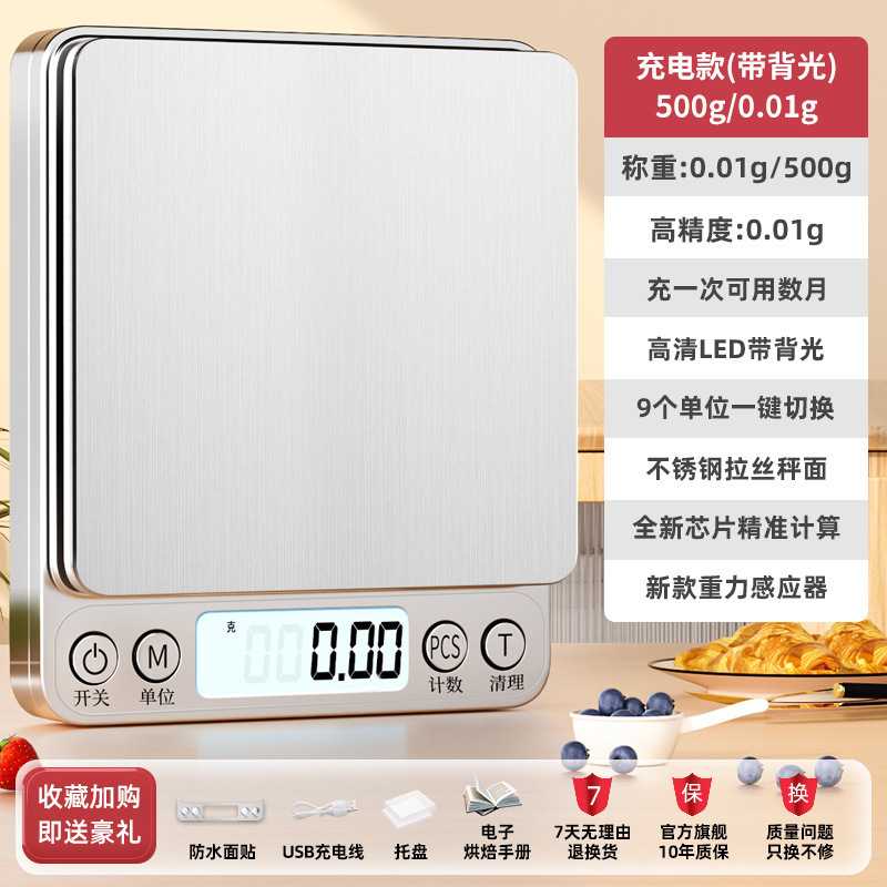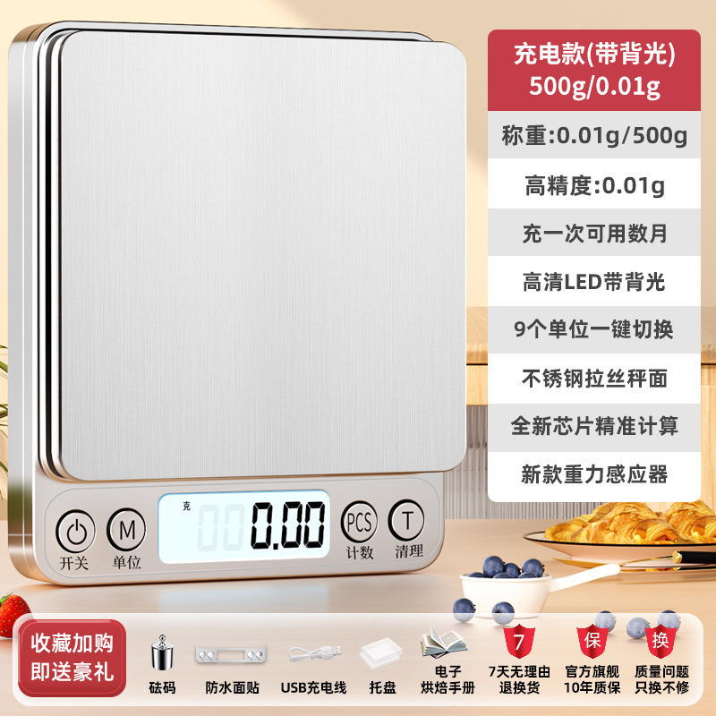 • 충전식 백라이트/1kg/0.1g에는 이중 트레이 + 충전 케이블 + 8가지 선물이 함께 제공됩니다.✦☆