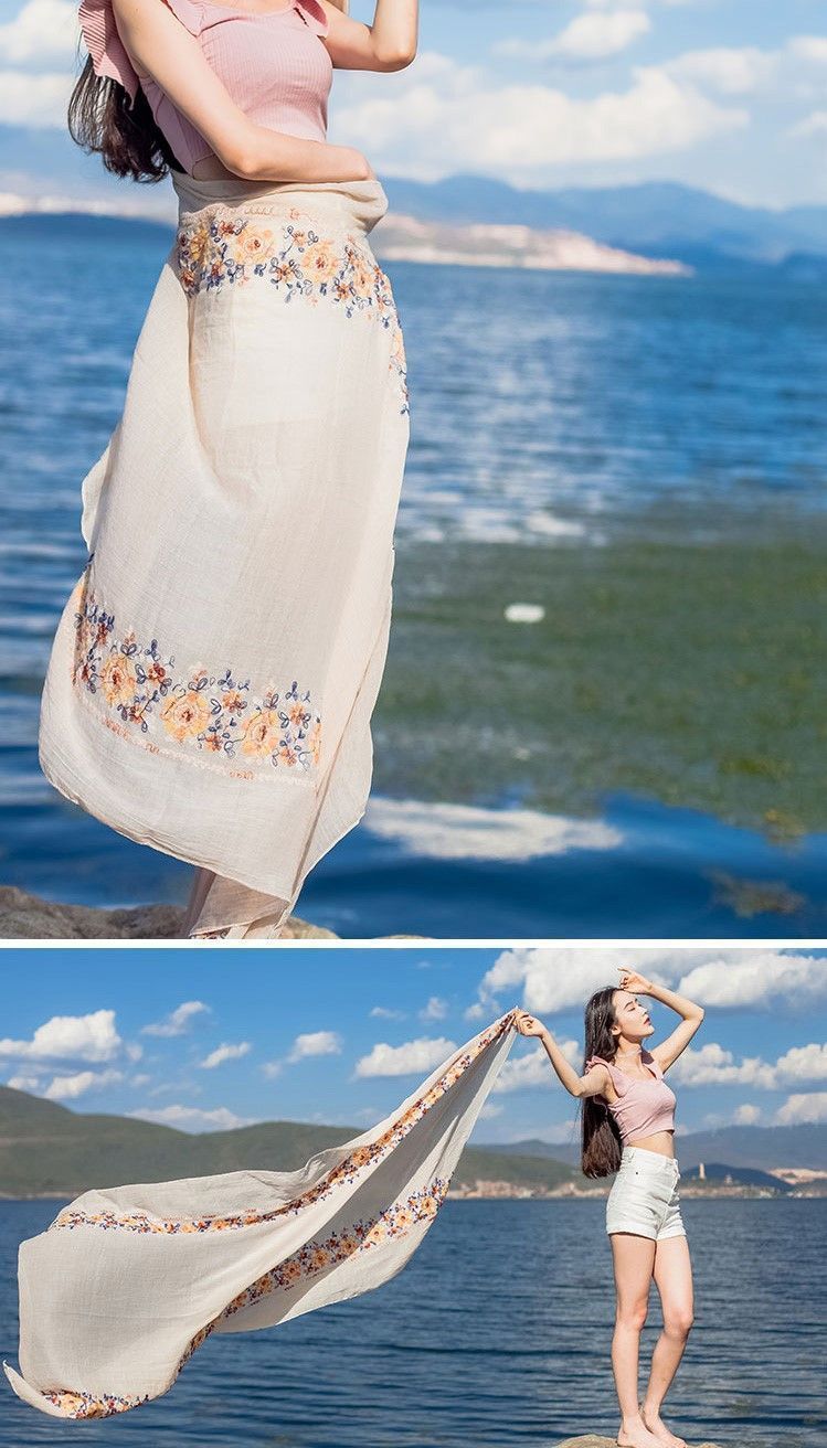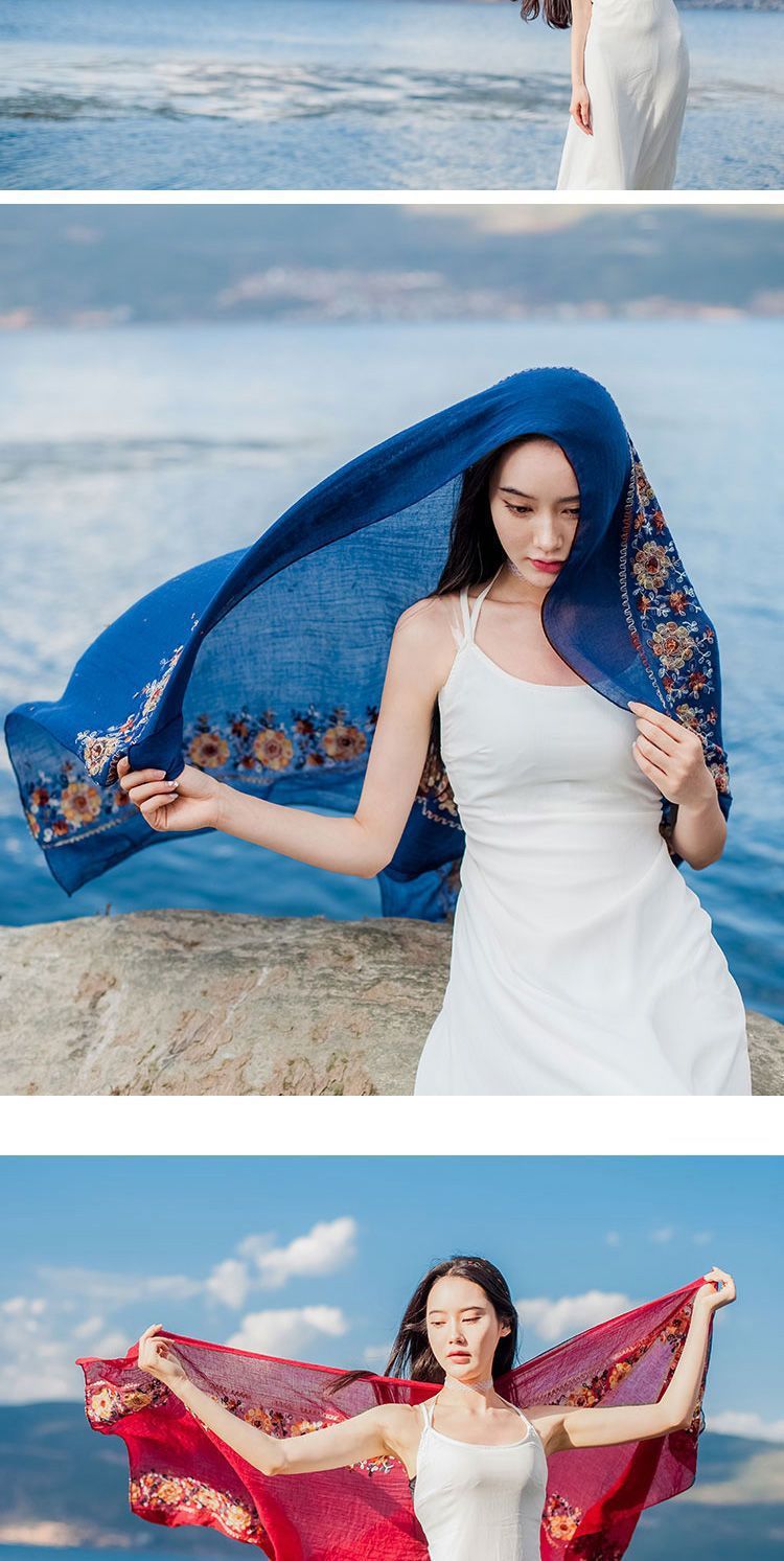 민족 스타일 자수 스카프 목도리 사막 여행 자외선 차단제 목도리 해변 비치 타월 얇은 휴가 자수 스카프