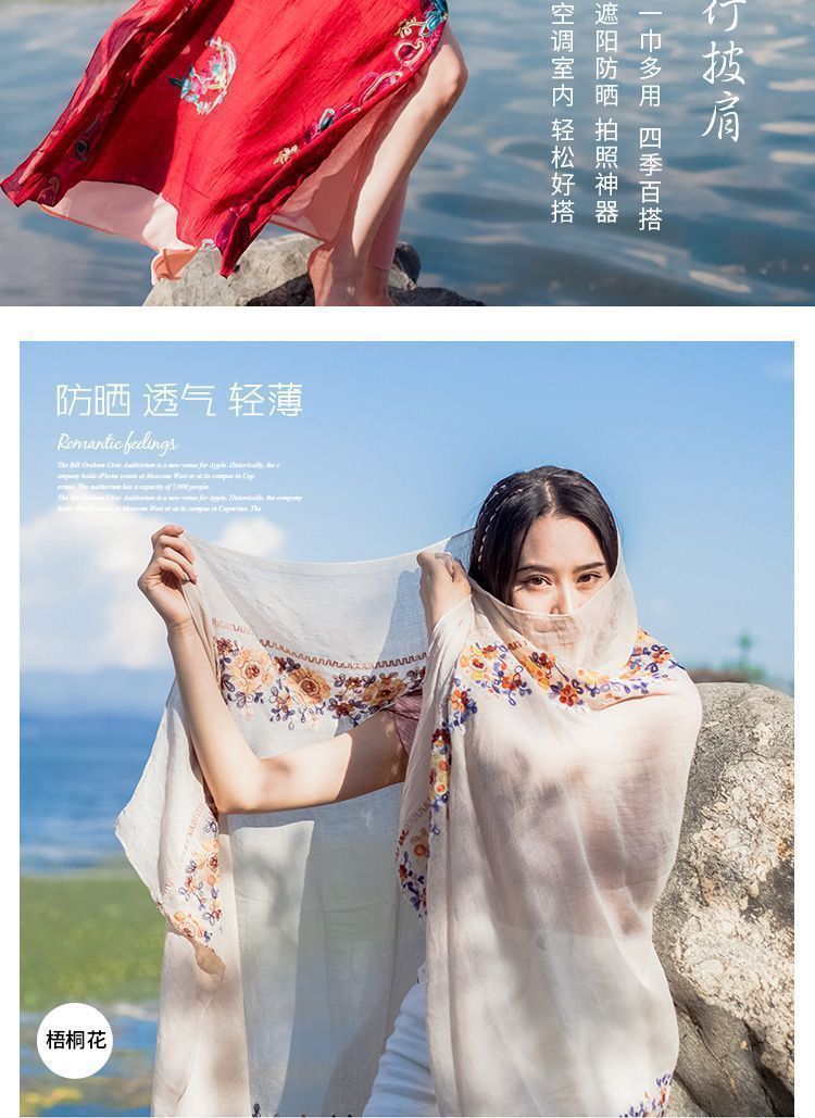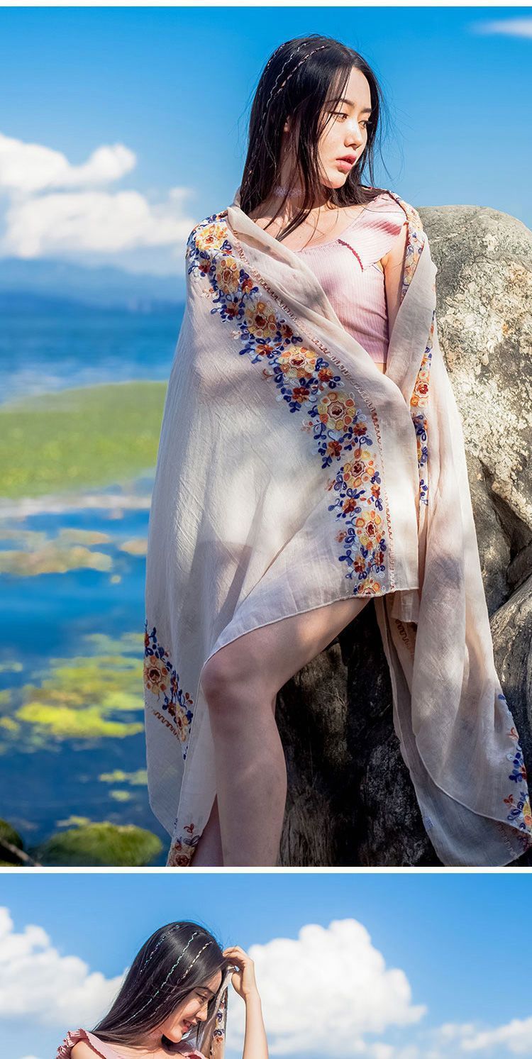 민족 스타일 자수 스카프 목도리 사막 여행 자외선 차단제 목도리 해변 비치 타월 얇은 휴가 자수 스카프스토어 가기