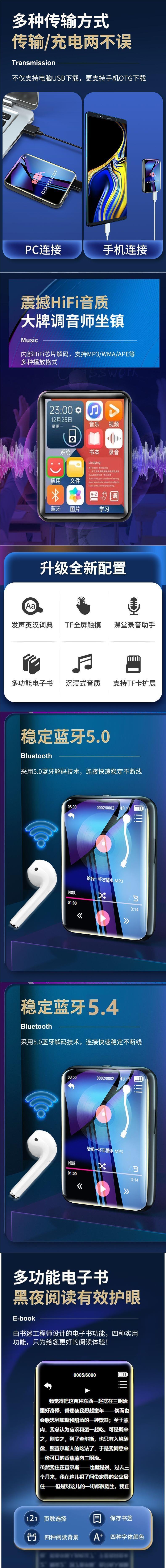mp4 학생 mp5 터치 스크린 버전 고등학생은 소설을 읽고 노래를 듣습니다. mp3 워크맨은 블루투스 학생 버전과 연결할 수 있습니다.스토어 가기