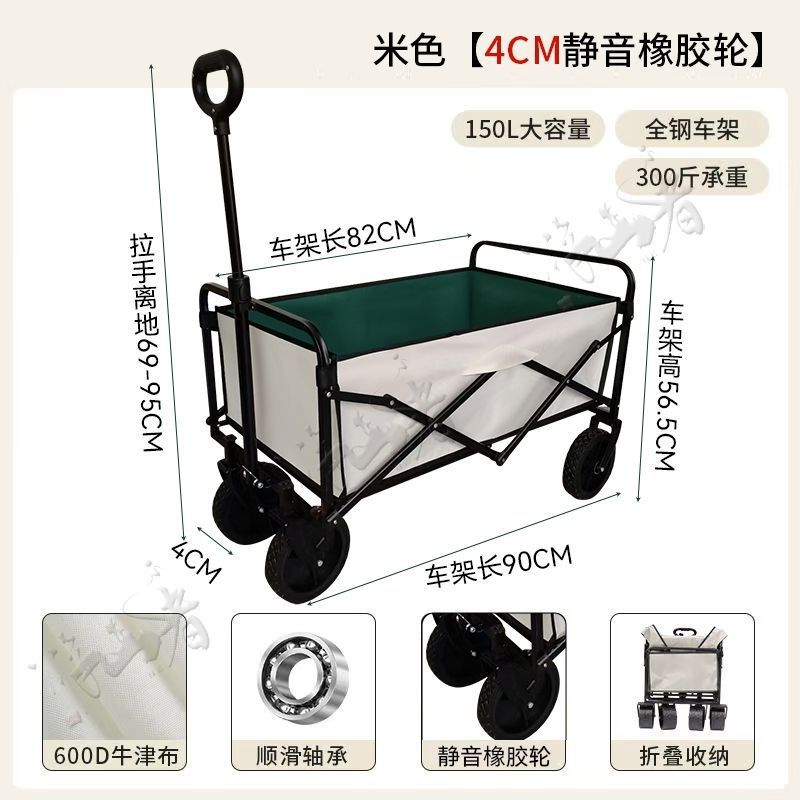 • 베이지 [600D 이중 두꺼운 옥스포드 천] - 10inch 탱크 휠 + 더블 브레이크 + 견인 버킷 스타일 + 접이식 블랙 테이블