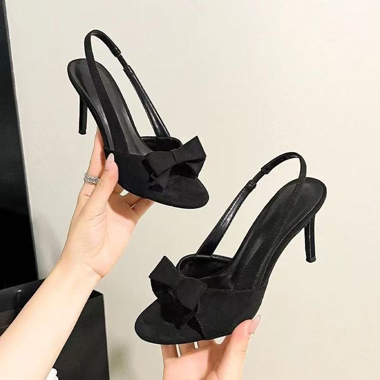 2025년 여름 신상 라운드 토 보우 오픈 토 샌들 여성 여름 스타일 다재다능한 데일리 캐주얼 스틸레토 힐