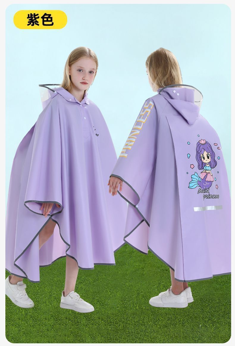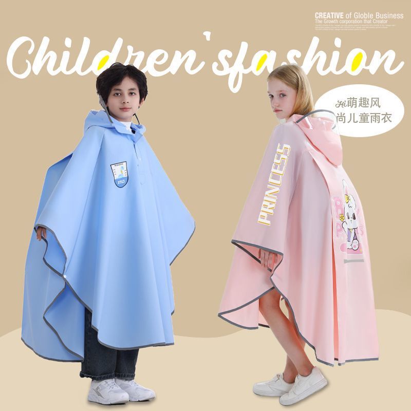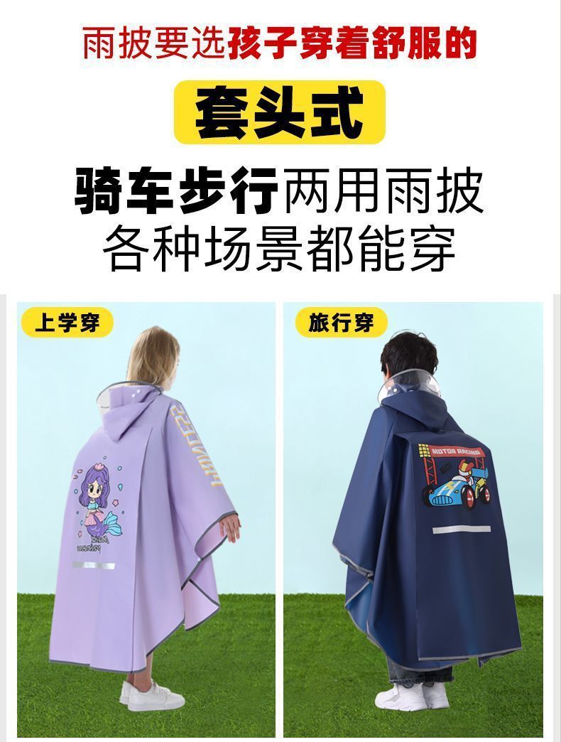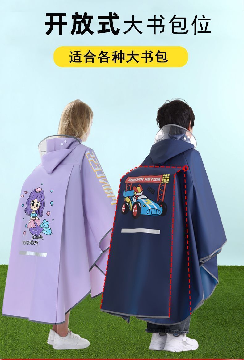 어린이 비옷, 폭우등급 사이클링, 초등학생이 책가방과 망토, 판초를 가지고 학교에 갈 수 있는 전신 일체형 방수 비옷