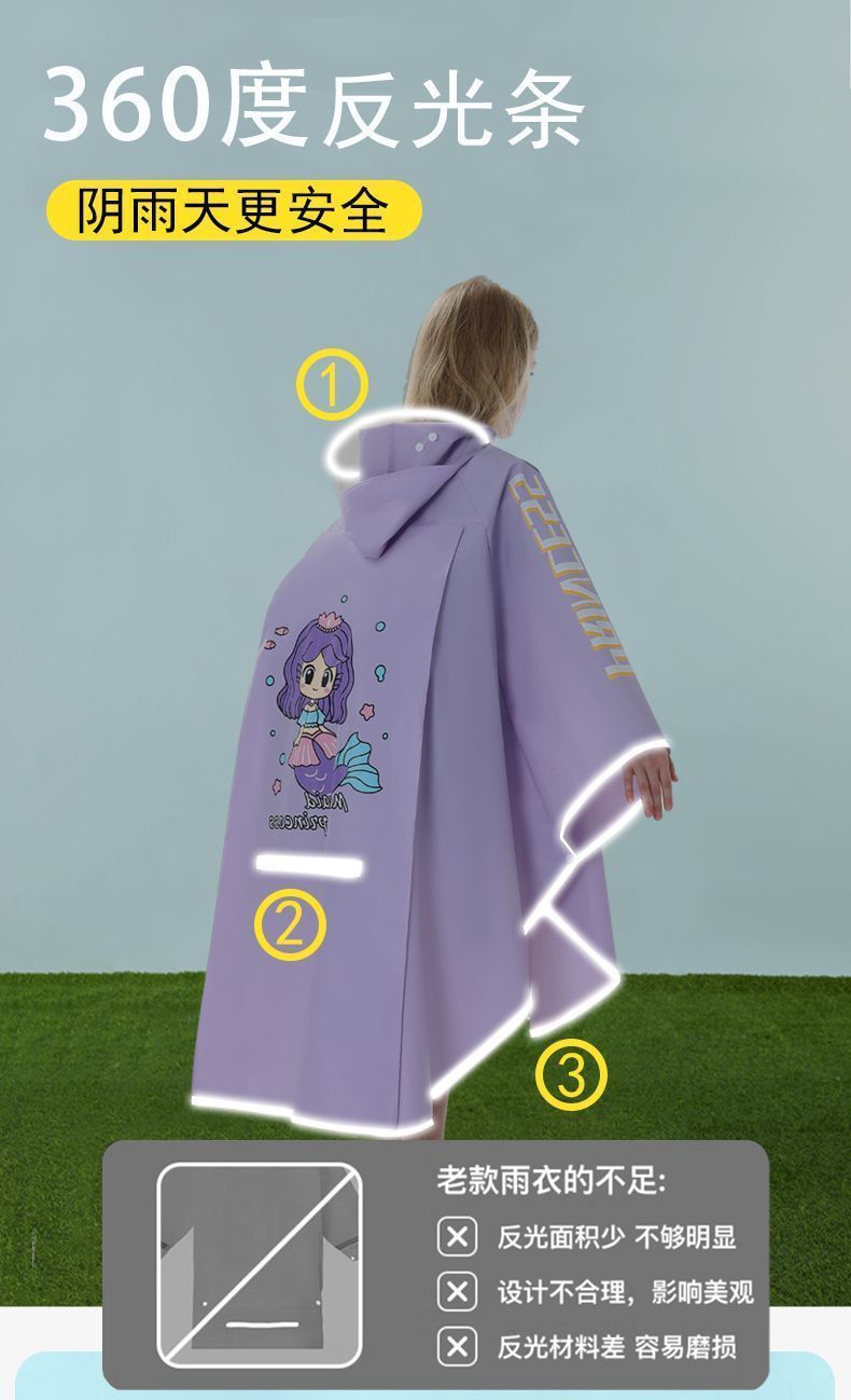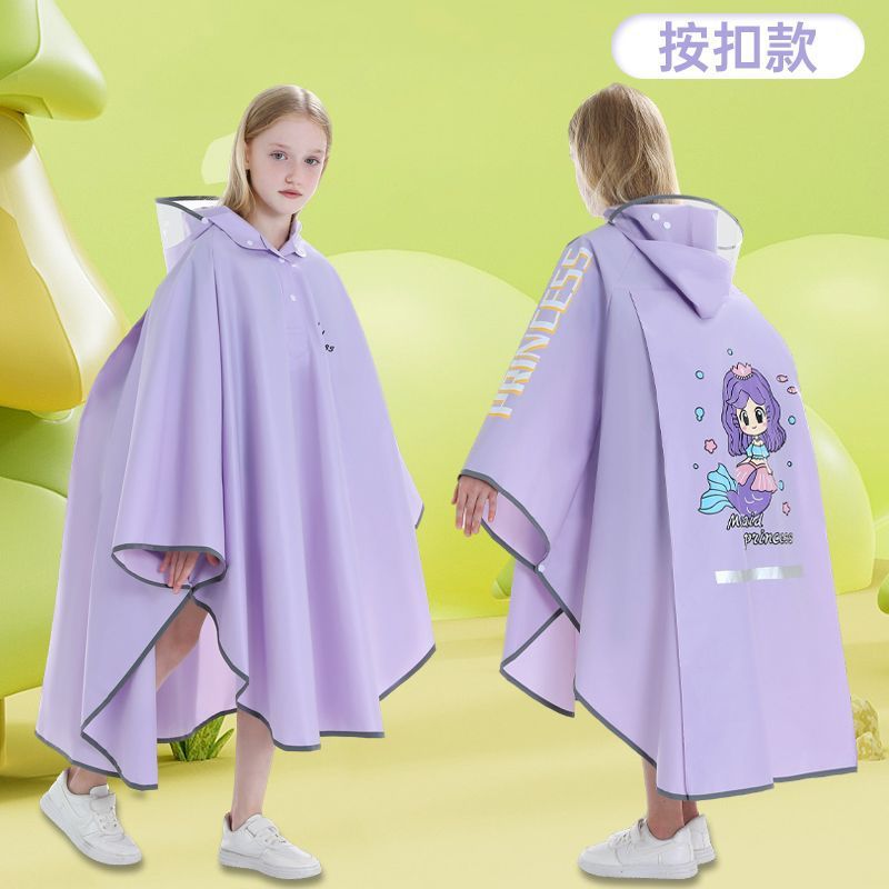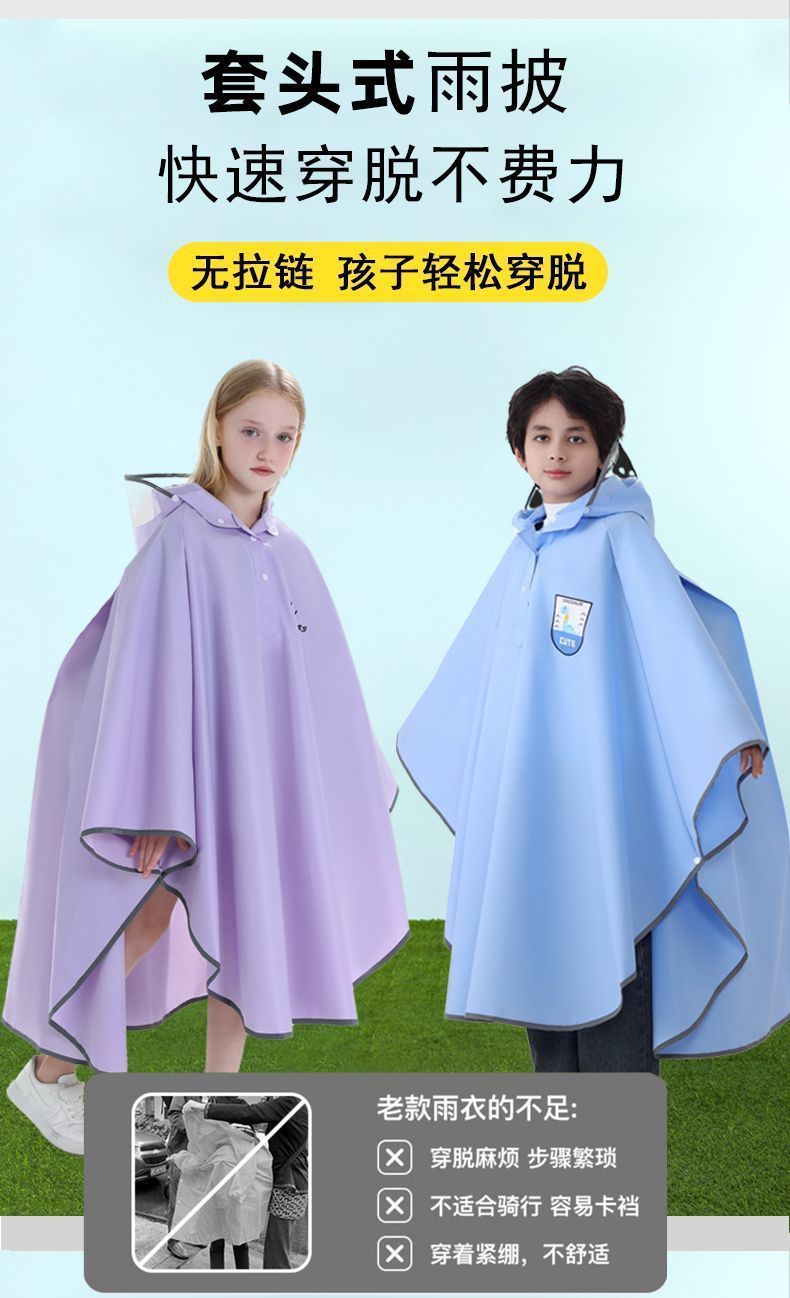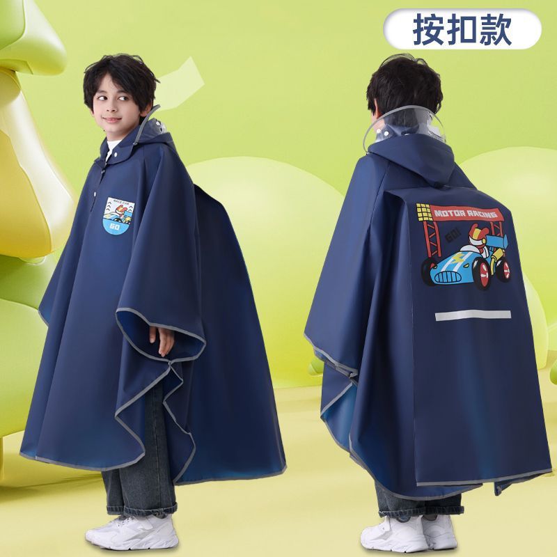 어린이 비옷, 폭우등급 사이클링, 초등학생이 책가방과 망토, 판초를 가지고 학교에 갈 수 있는 전신 일체형 방수 비옷