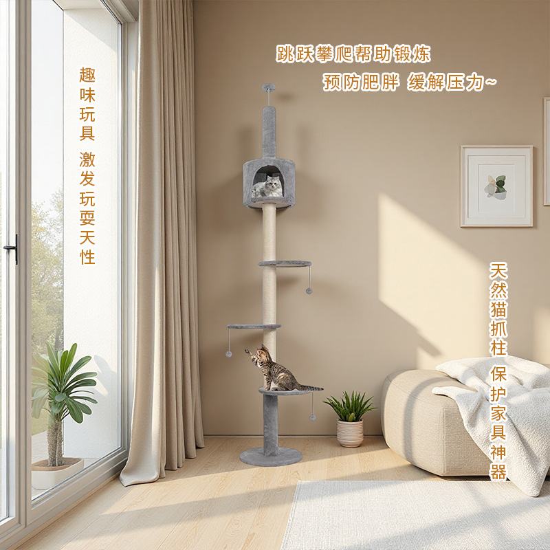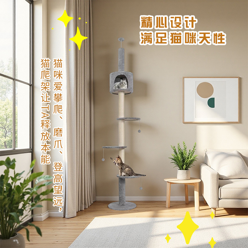 공장 도매 고양이 바닥 고양이 클라이밍 프레임 트리 타워 Tmall 스크래치 포스트 고양이 점프 플랫폼 애완 동물 해먹 대형 고양이 아파트