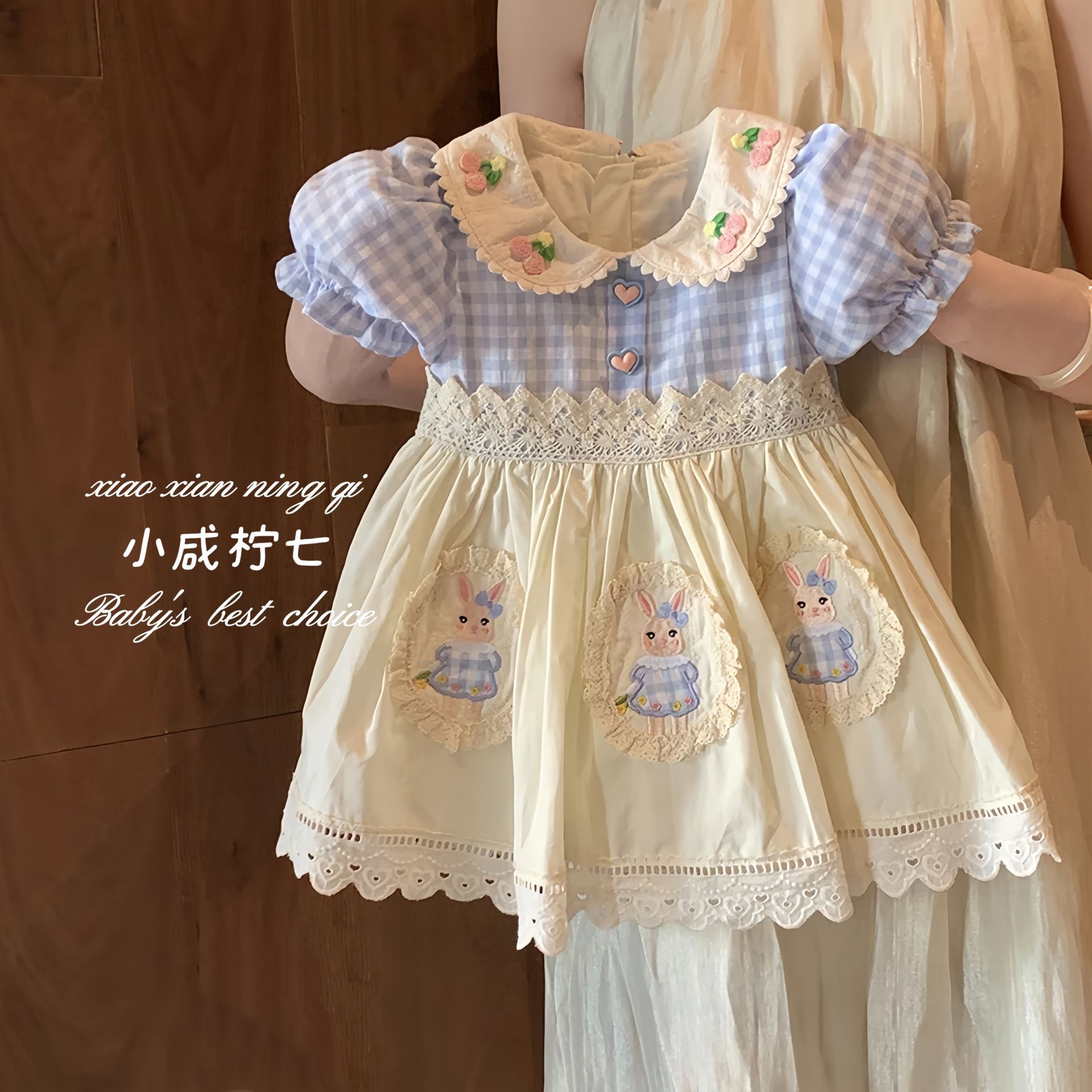 [Little Salty Lemon Seven] 여아 여름 여아 스위트 드레스 홀리데이 스타일 여아 로리타 공주 드레스 트렌디