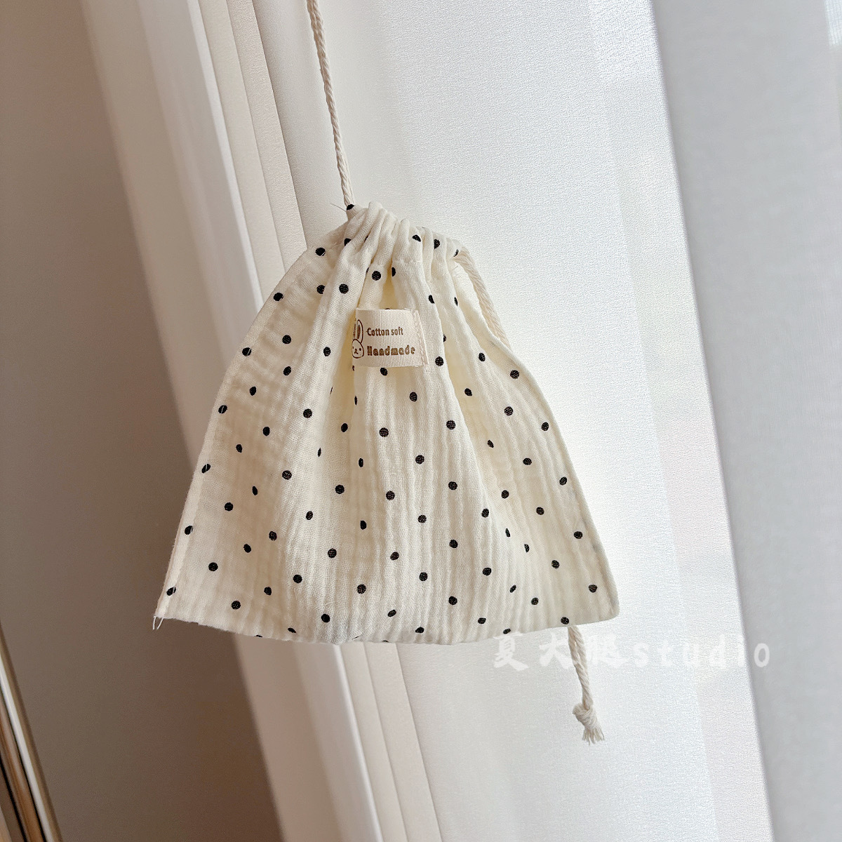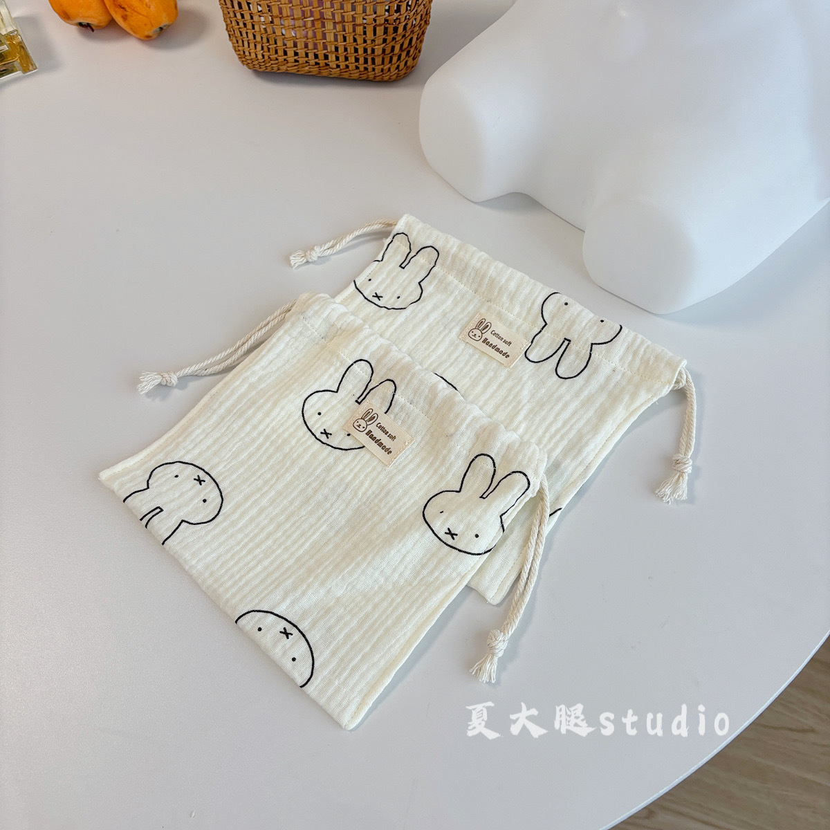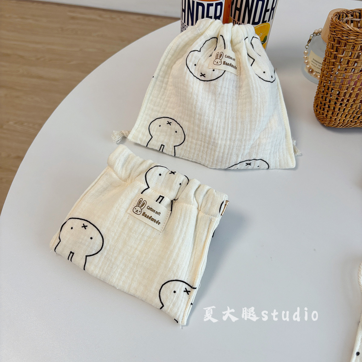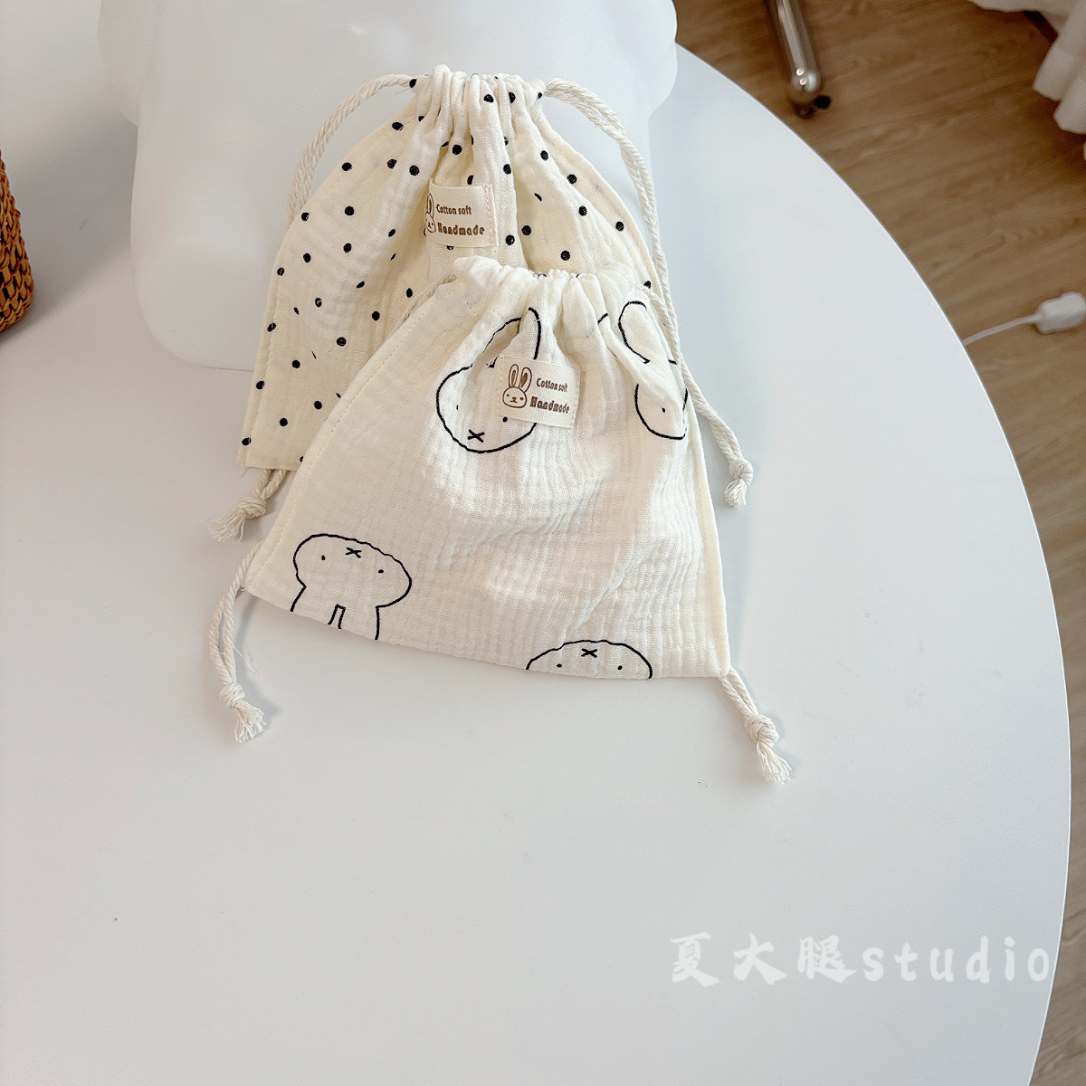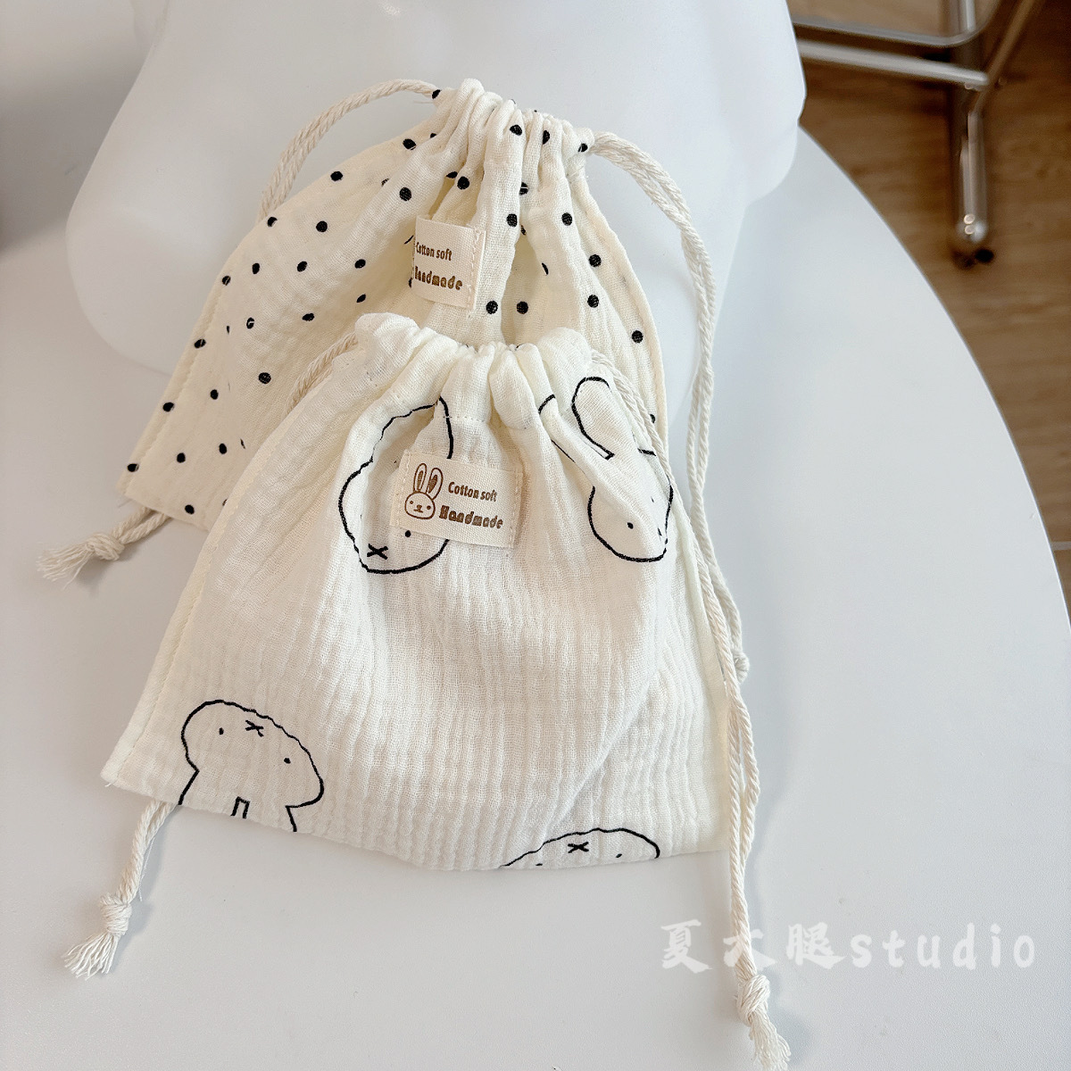 순수 코튼 거즈 밀크 화이트 폴카 도트 미피 토끼 보관 가방 졸라 매는 끈 가방 여행 화장품 번들 포켓 코튼 가방