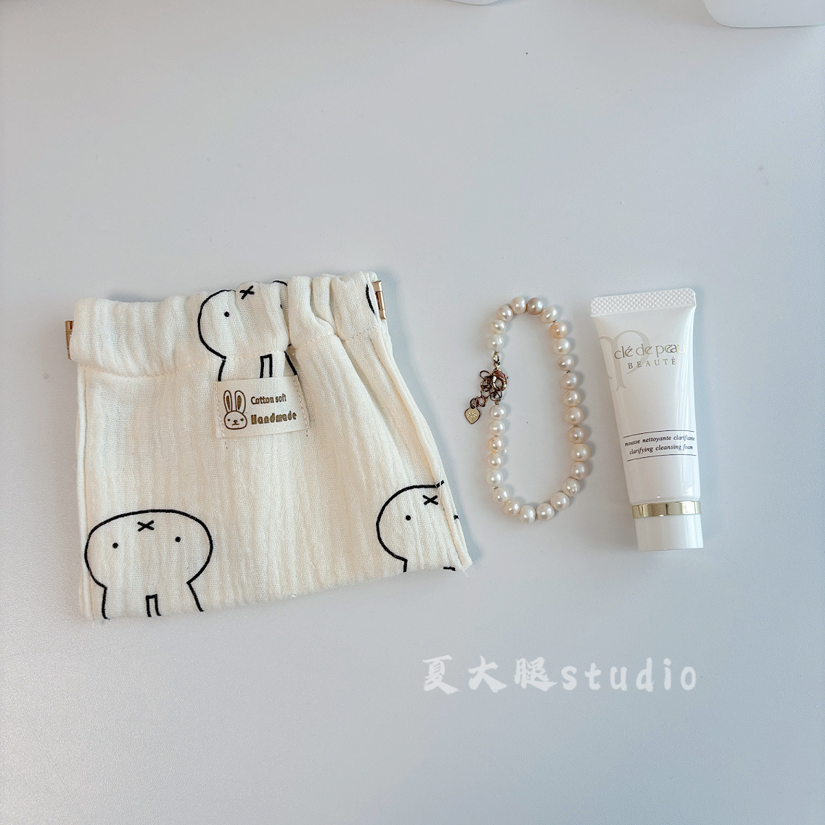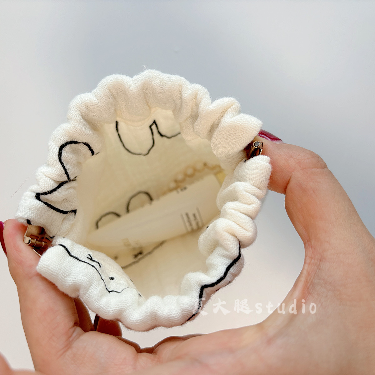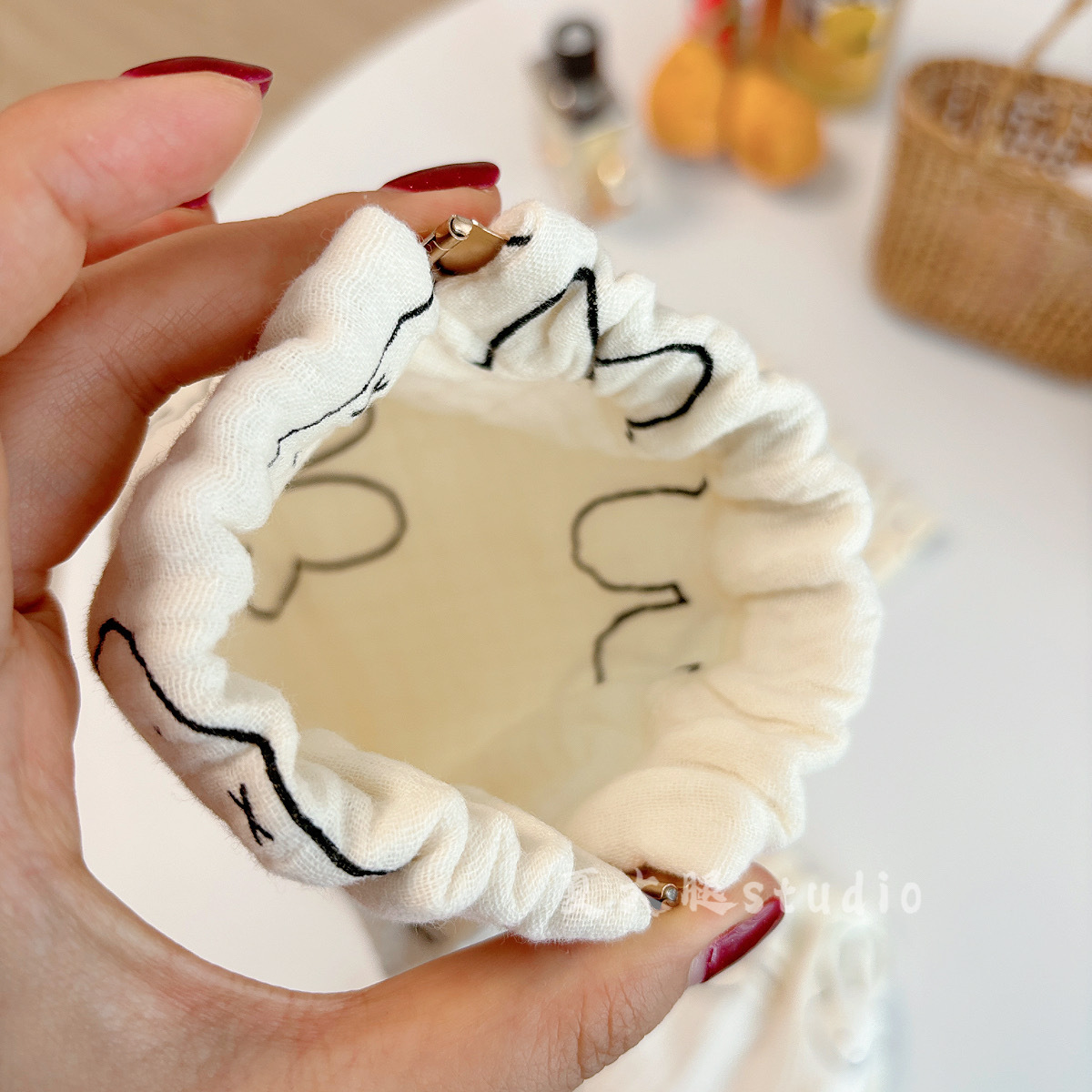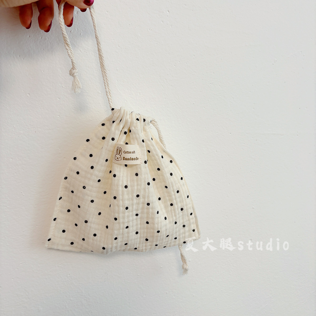 순수 코튼 거즈 밀크 화이트 폴카 도트 미피 토끼 보관 가방 졸라 매는 끈 가방 여행 화장품 번들 포켓 코튼 가방