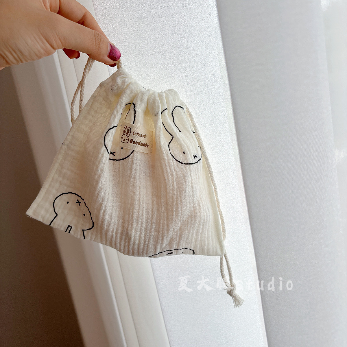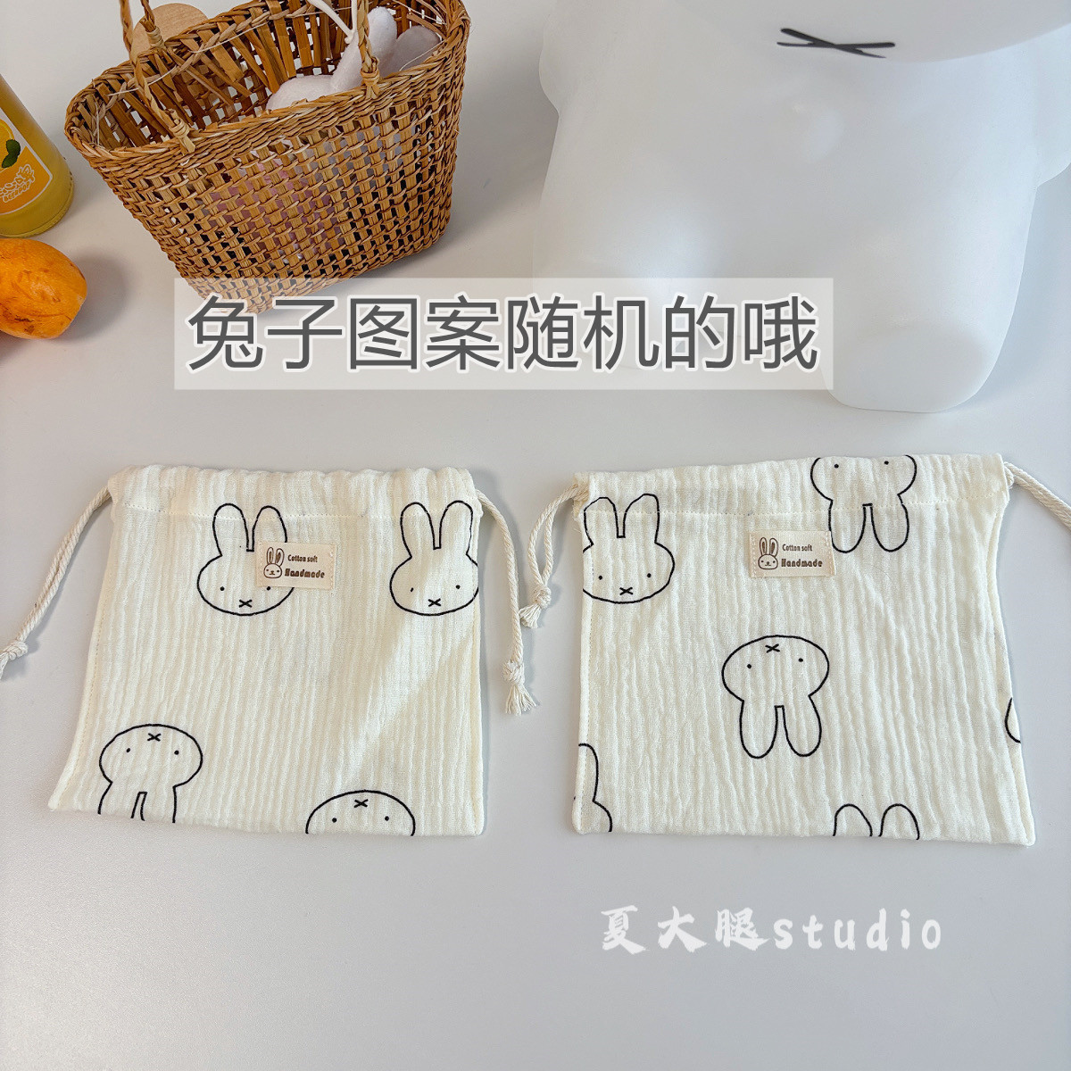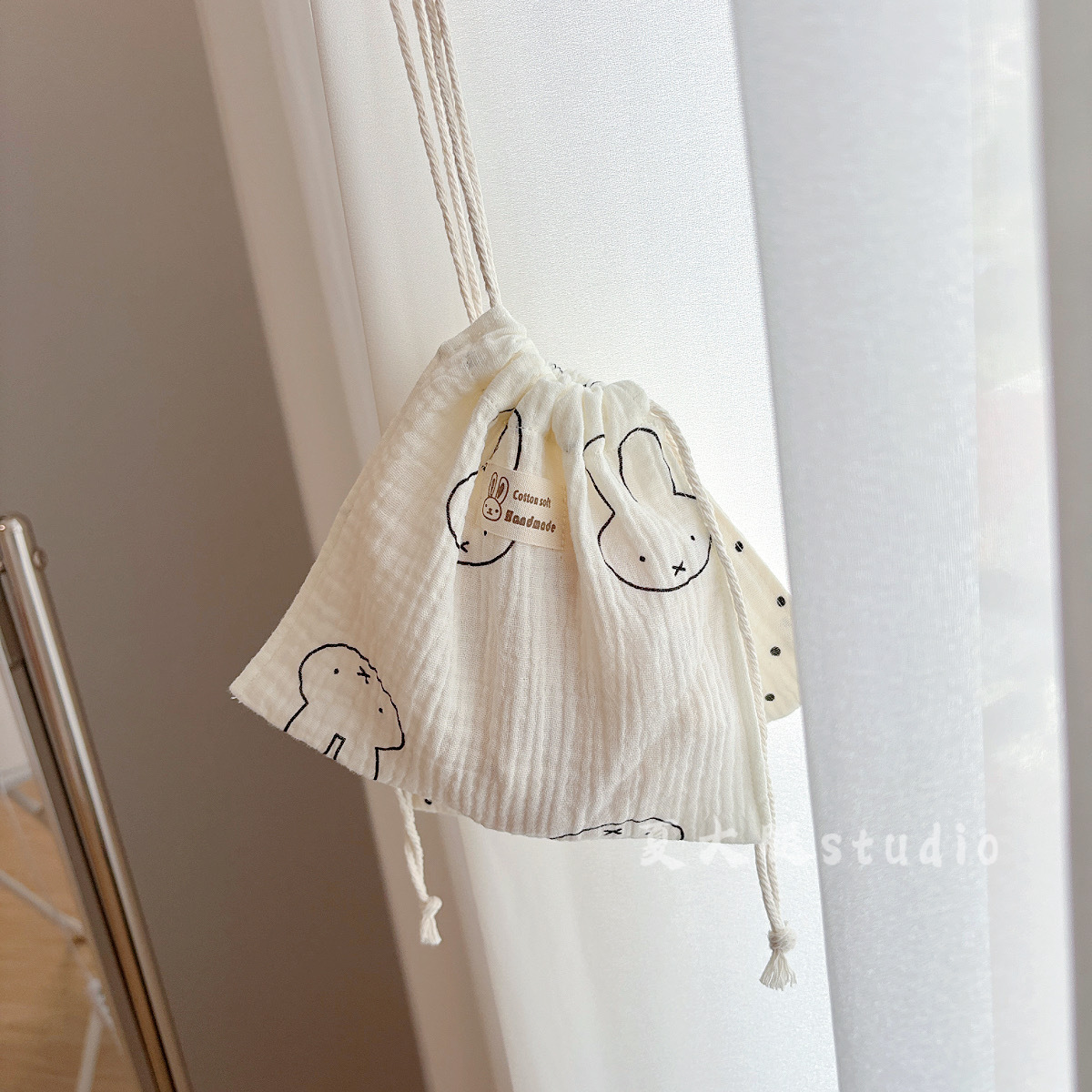 • [랜덤 패턴] 면사 미피 토끼 조임주머니 [약 18*18cm]