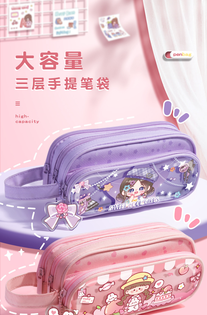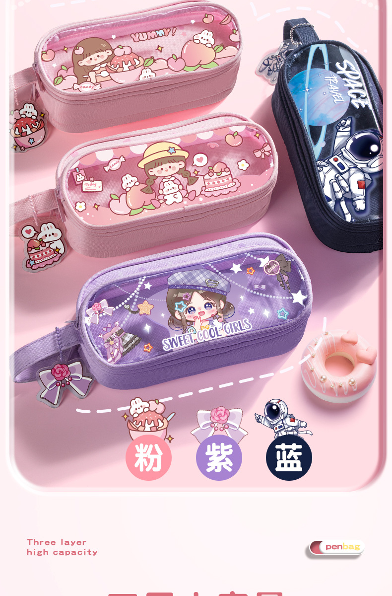 초등학생을 위한 멋진 새 휴대용 필통, 대용량 필통, 귀여운 소녀 다층 필통, 문구 가방스토어 가기