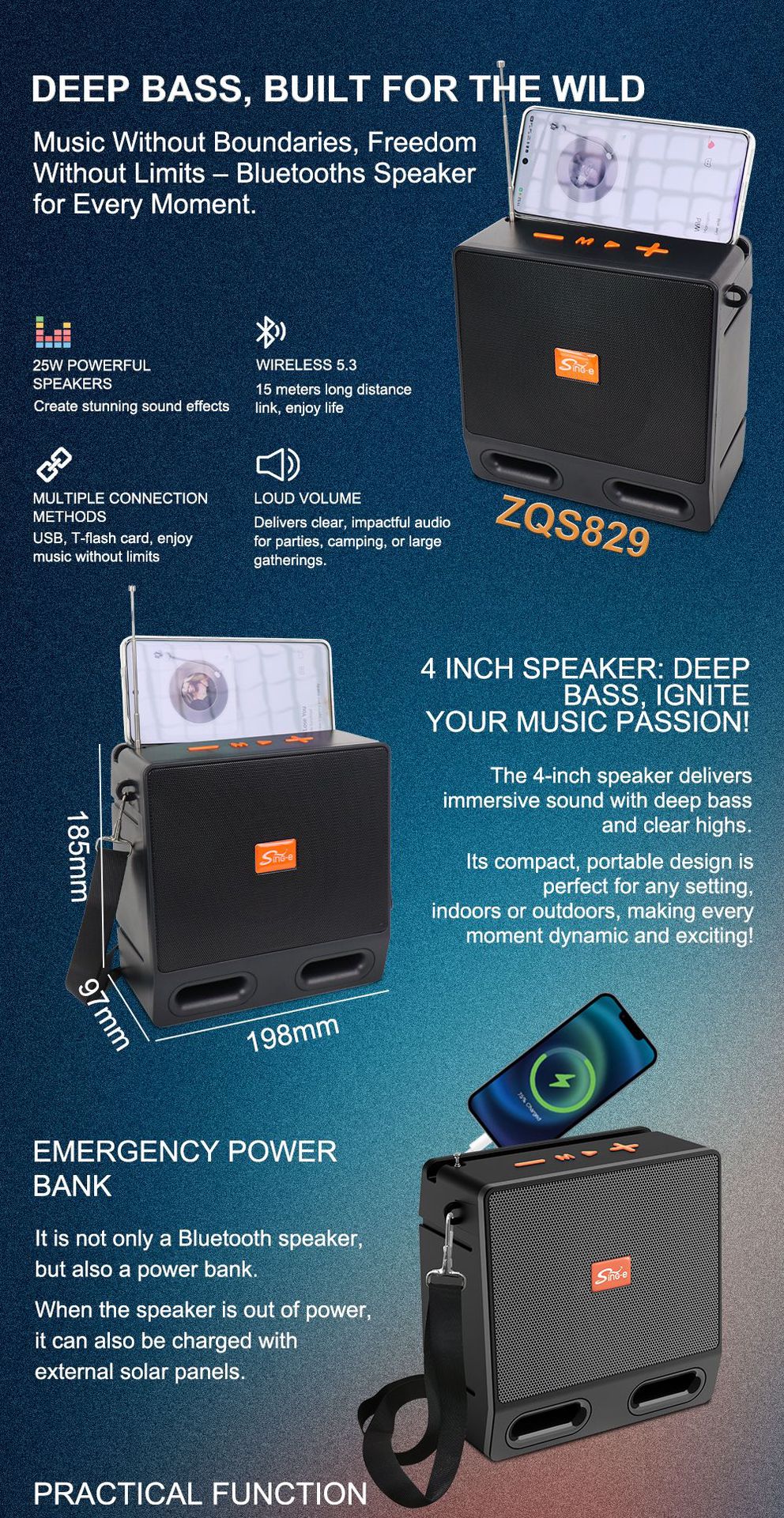 SING-E ZQS829 대용량 블루투스 소형 스피커 라디오가 포함된 휴대용 무선 컴퓨터 데스크탑 서브우퍼