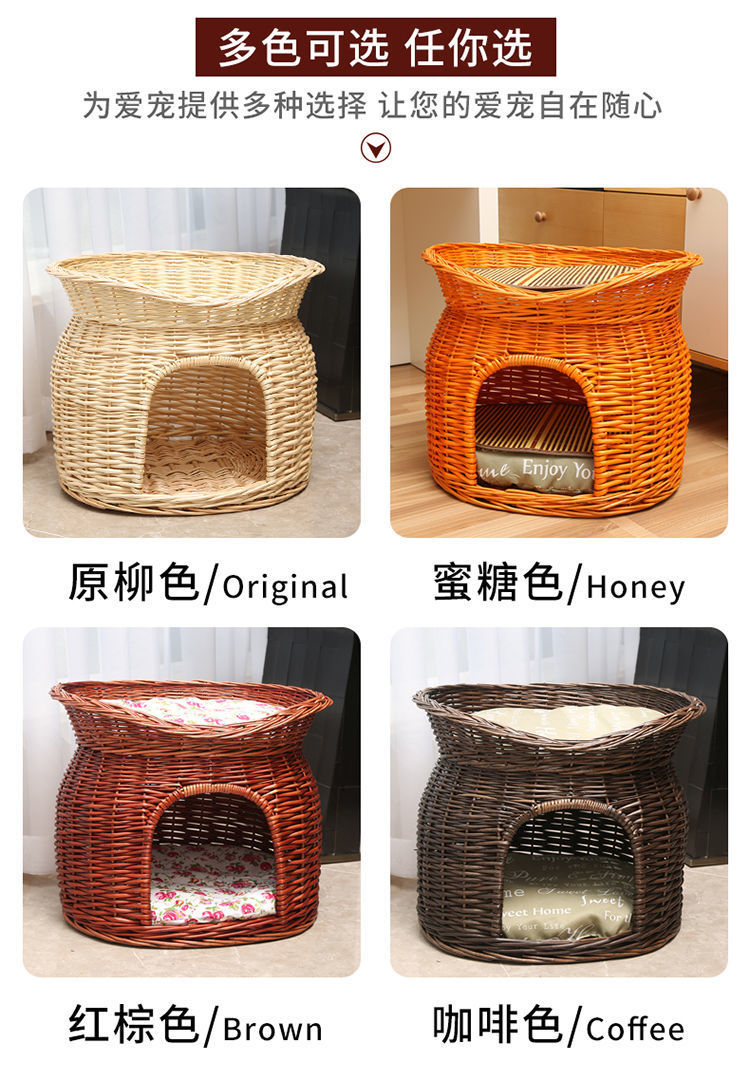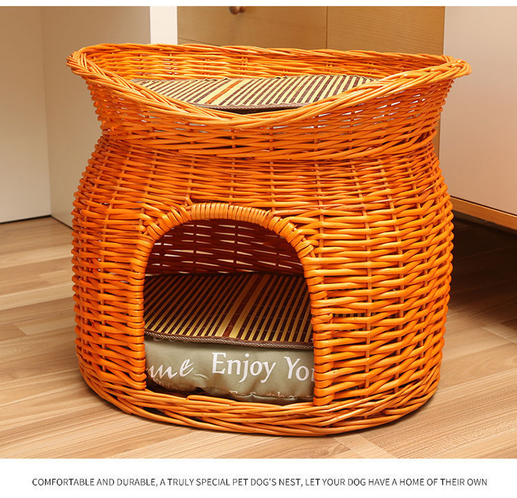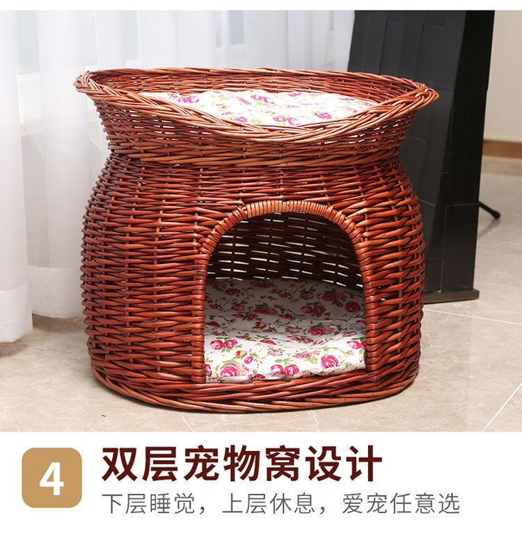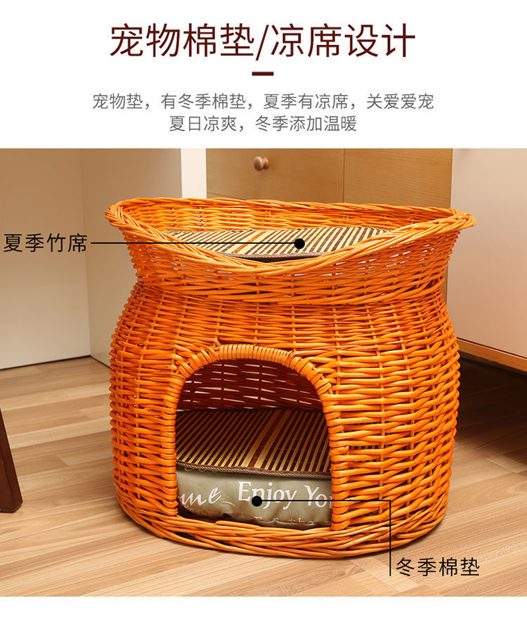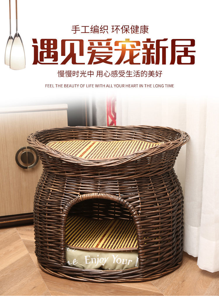 여름 고양이 둥지, 사계절용 등나무 매트, 밀폐형 이중 레이어 고양이 집, 탈부착 및 세탁 가능한 중소형 개집스토어 가기