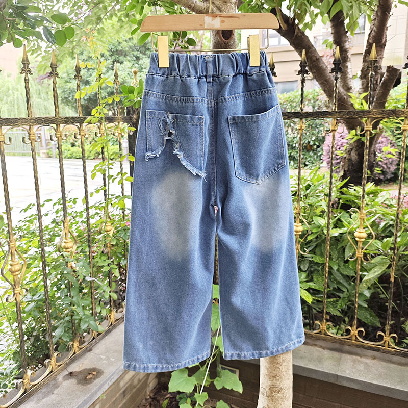Beidoh 어린이 청바지 봄과 가을 데님 바지 워시 데님 찢어진 올드 중대형 어린이 잘 생긴 바지