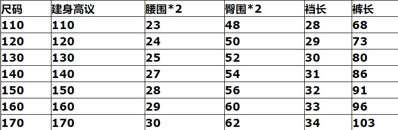 尺码 建身高议 腰围*2 臀围*2 裆长 裤长