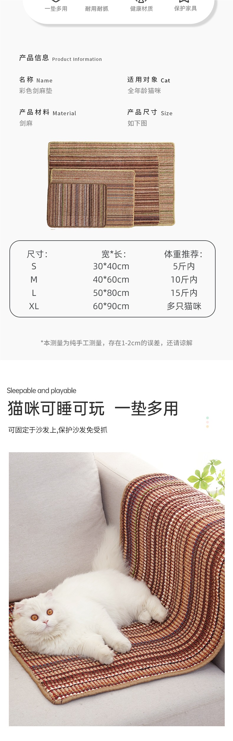 고양이 사자수 매트, 고양이 스크래치 보드, 내마모성 및 비탈착성, 소파 보호, 고양이 발톱 보드, 고양이 스크래치 방지 벽 고양이 장난감스토어 가기