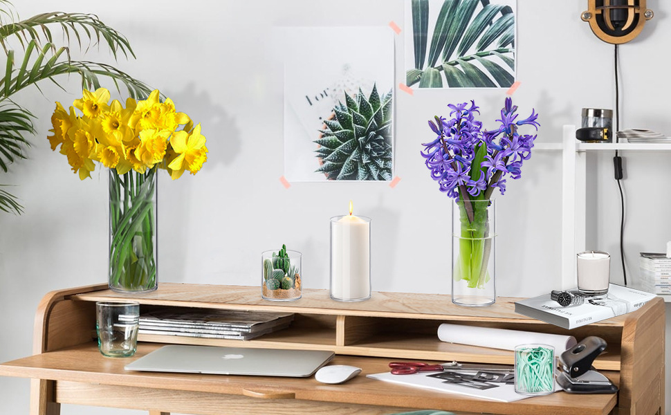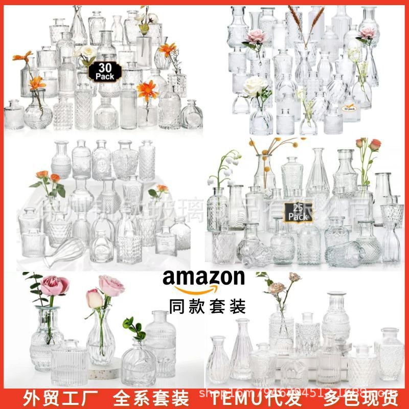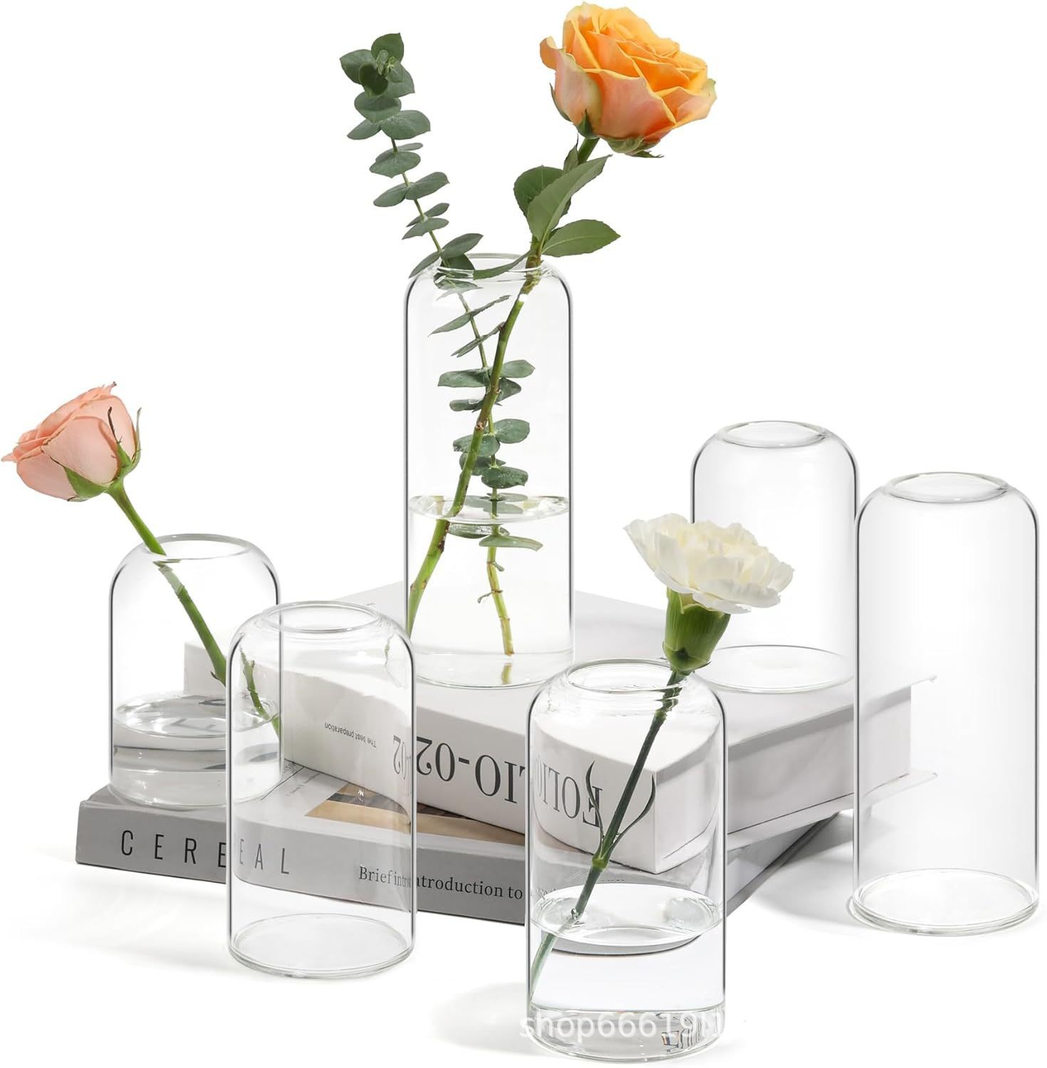 국경 간 인기있는 원통형 꽃병 웨딩 장식 작은 꽃 유리 투명 꽃병 홈 장식 센터 데스크탑 꽃병스토어 가기