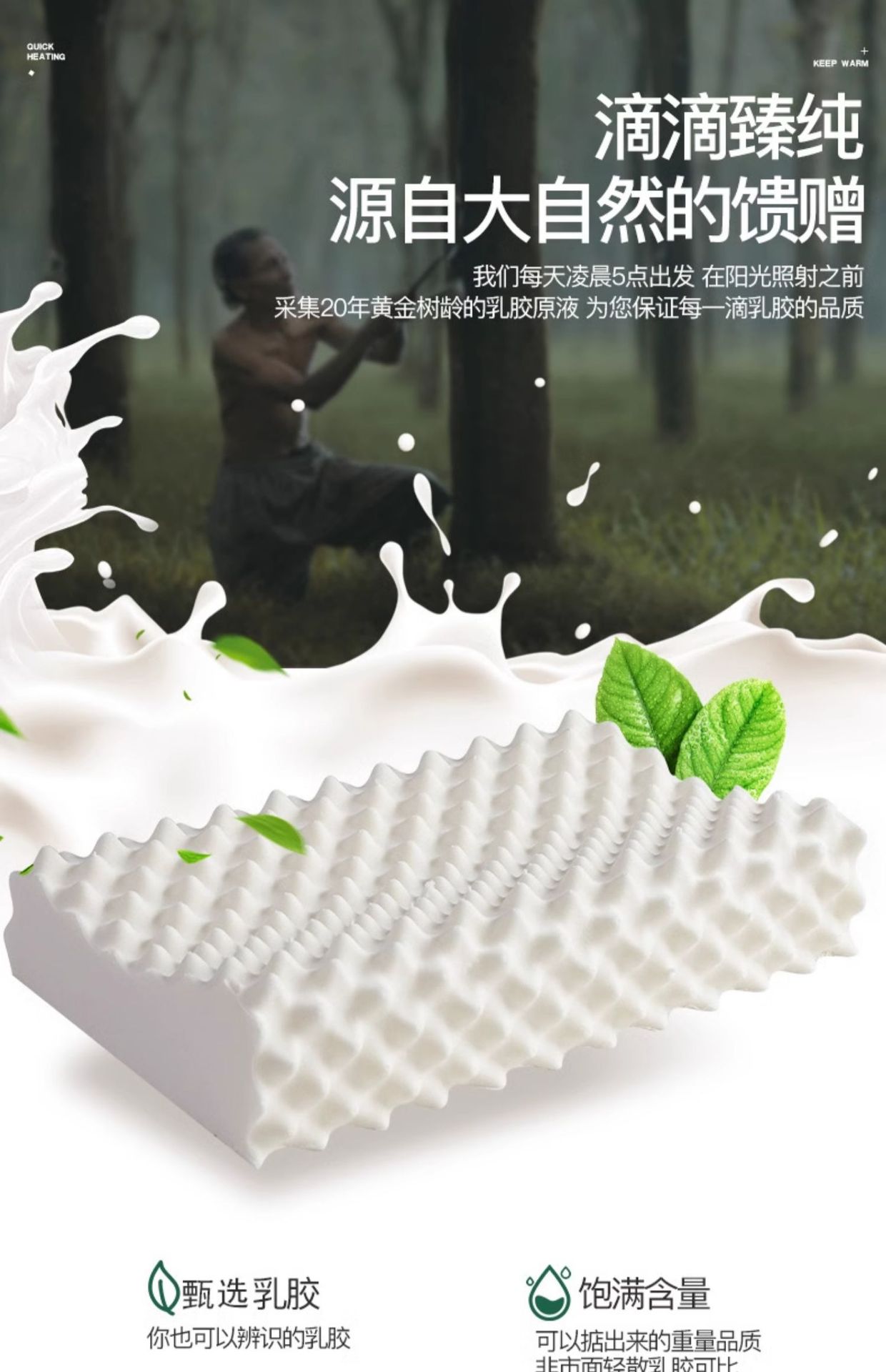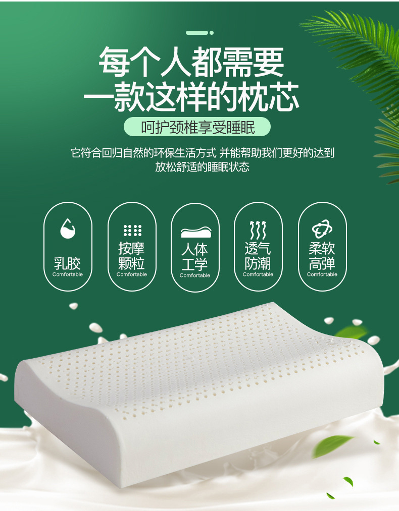 태국 라텍스 베개 코어 클래스 A 정품 가정용 천연 고무 경추 통증 성인 수면 보조 라텍스 베개