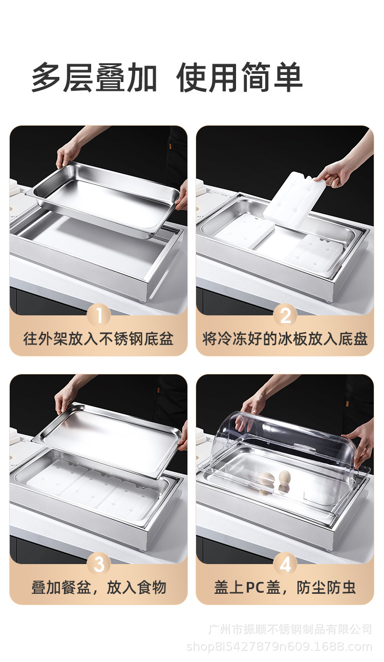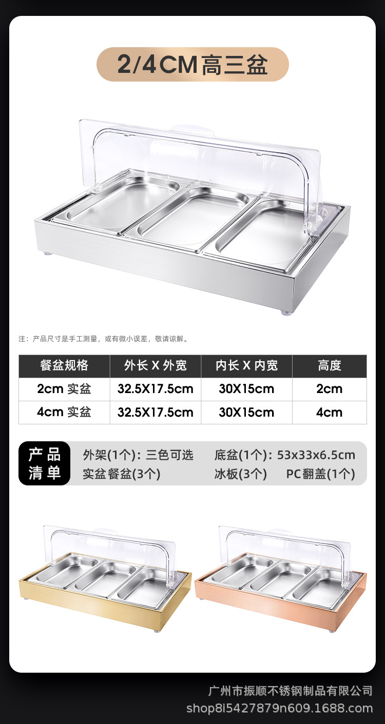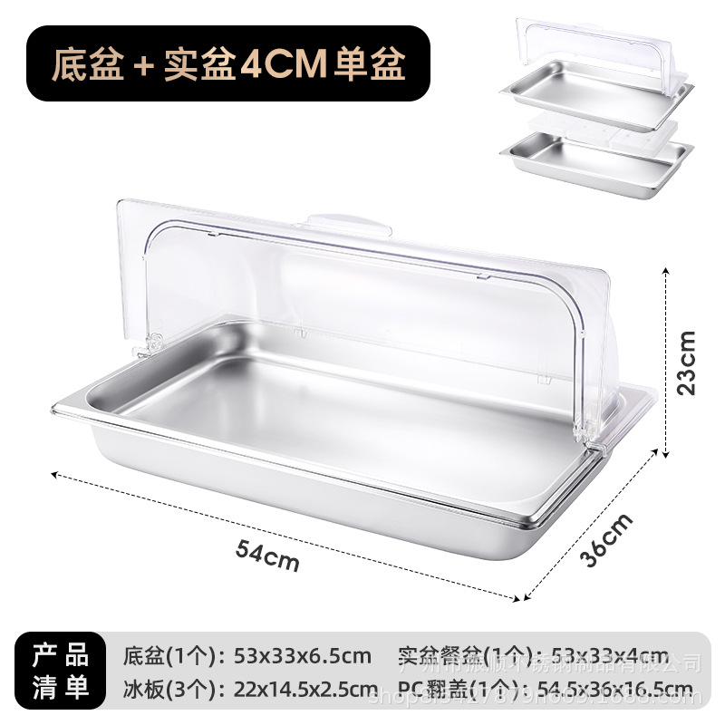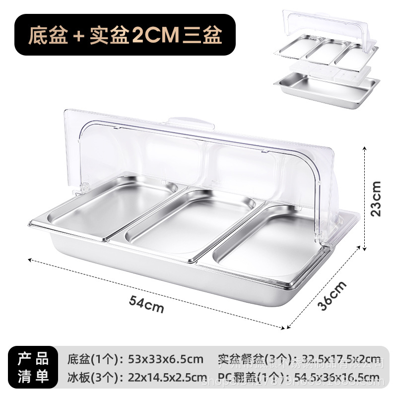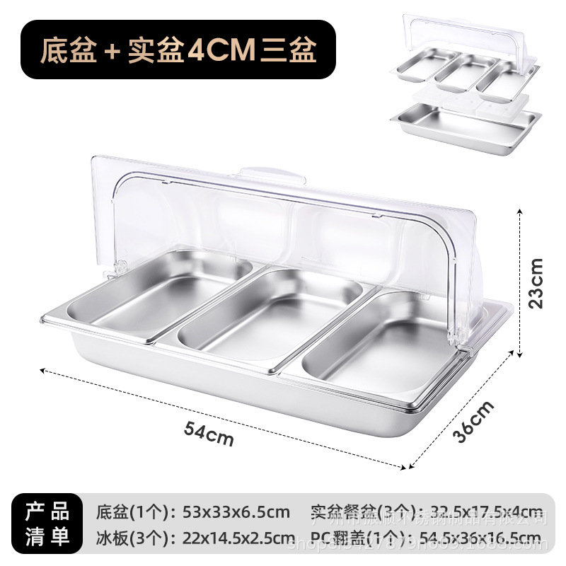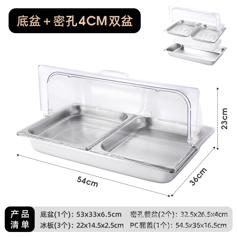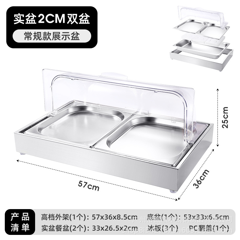 스테인레스 스틸 매리 네드 배수 트레이 호텔 캔틴 레스토랑 상업용 신선 유지 및 냉장 스시 디스플레이 뚜껑이있는 디스플레이 트레이스토어 가기
