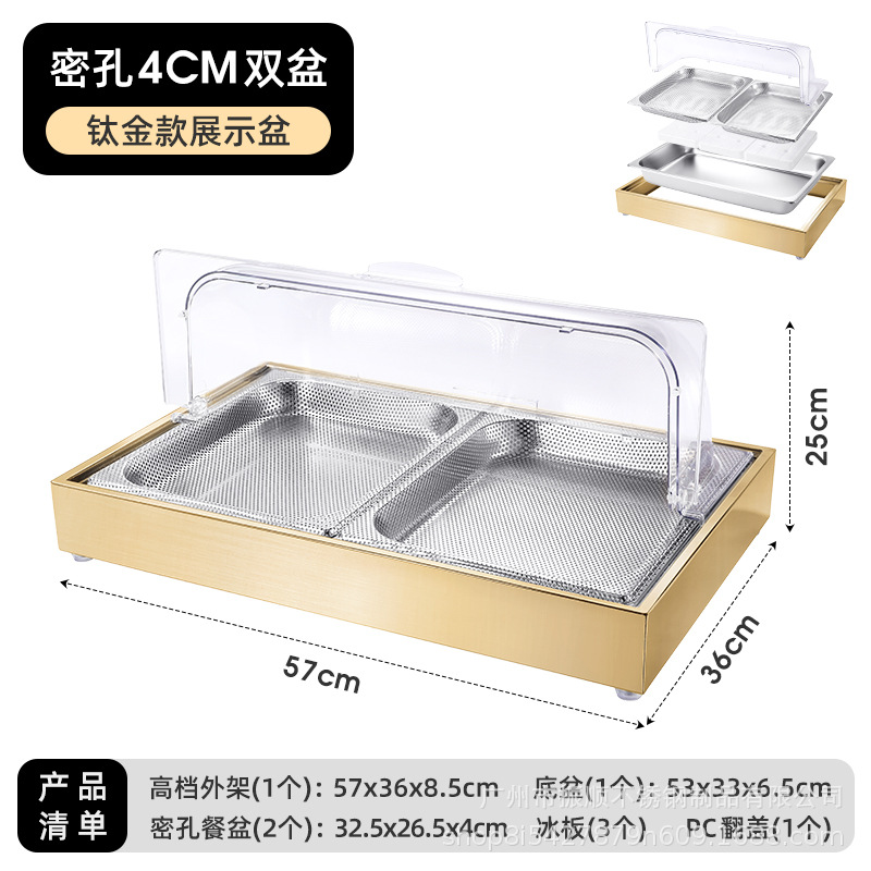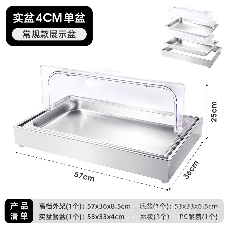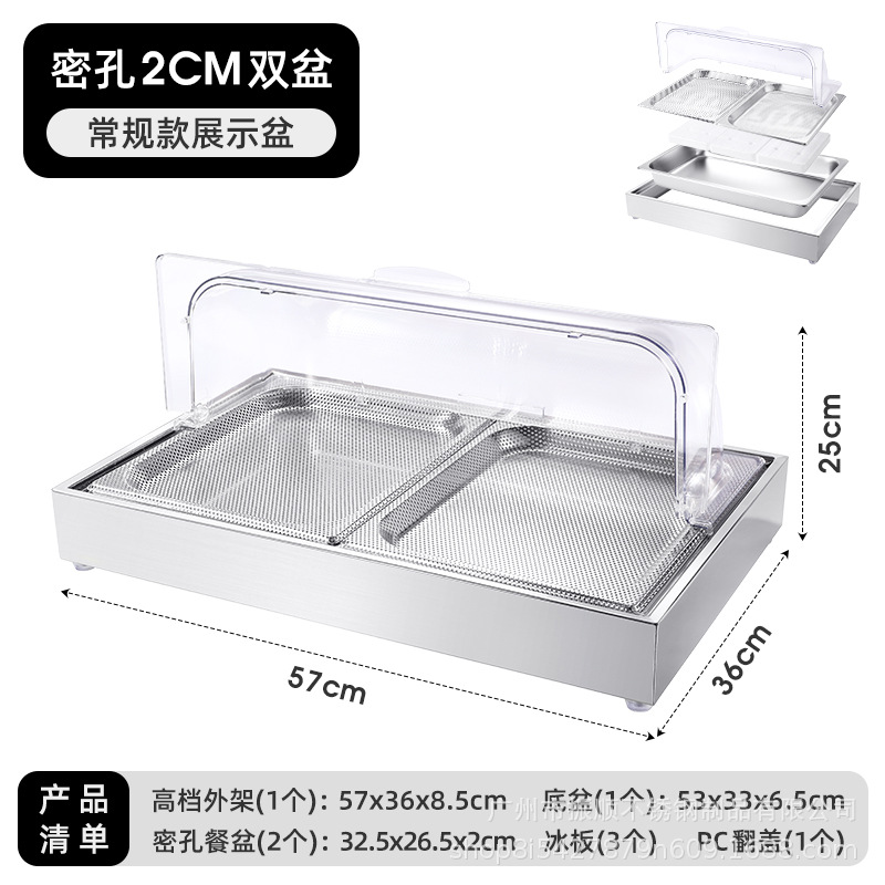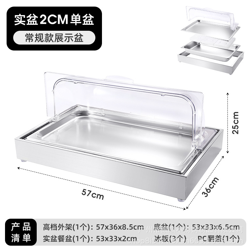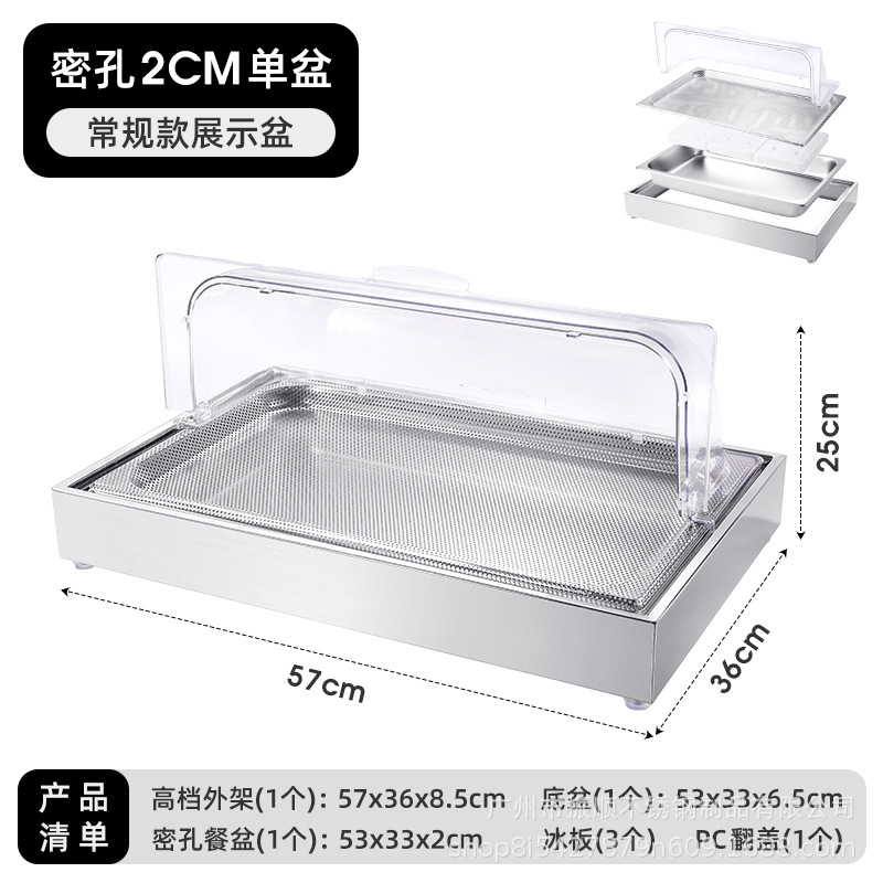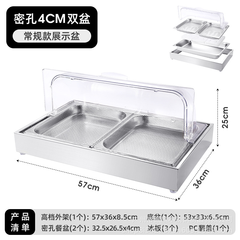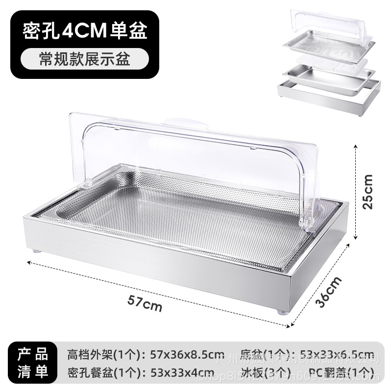 스테인레스 스틸 매리 네드 배수 트레이 호텔 캔틴 레스토랑 상업용 신선 유지 및 냉장 스시 디스플레이 뚜껑이있는 디스플레이 트레이