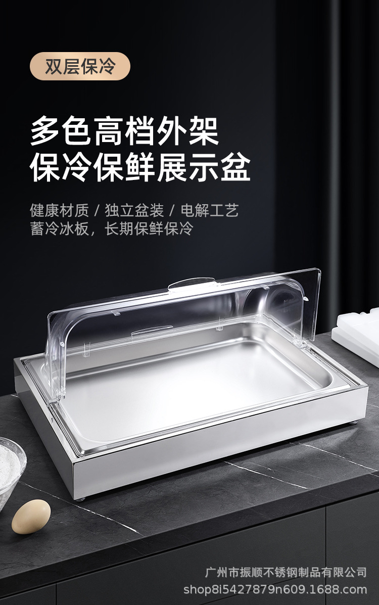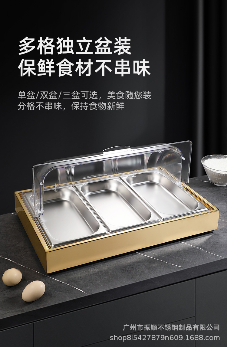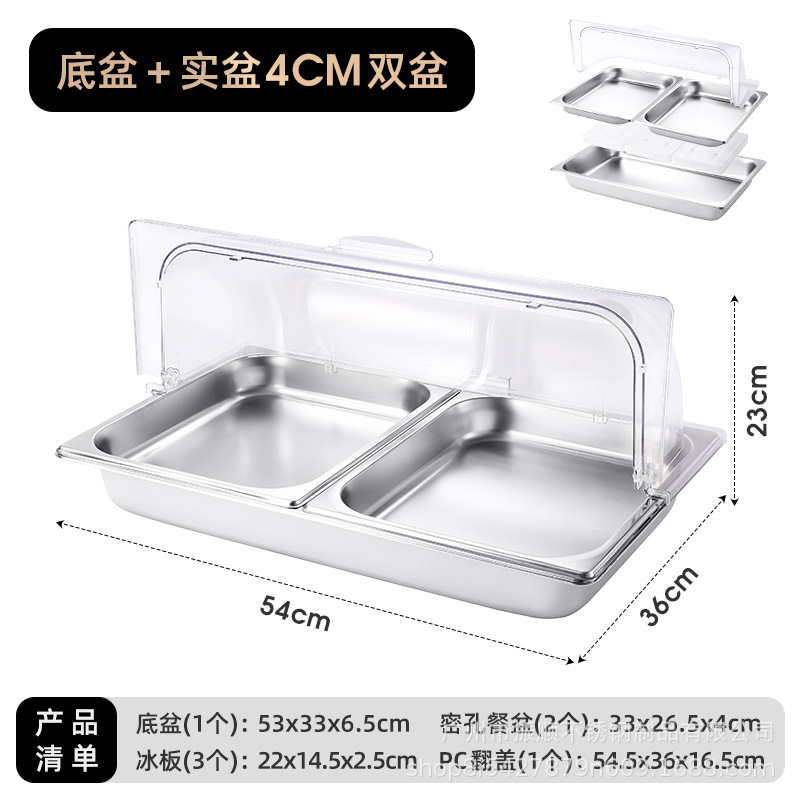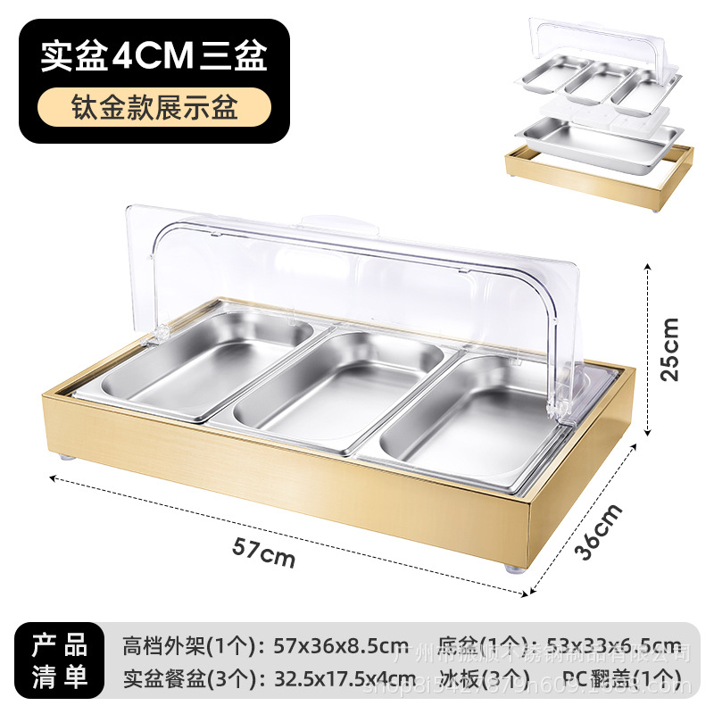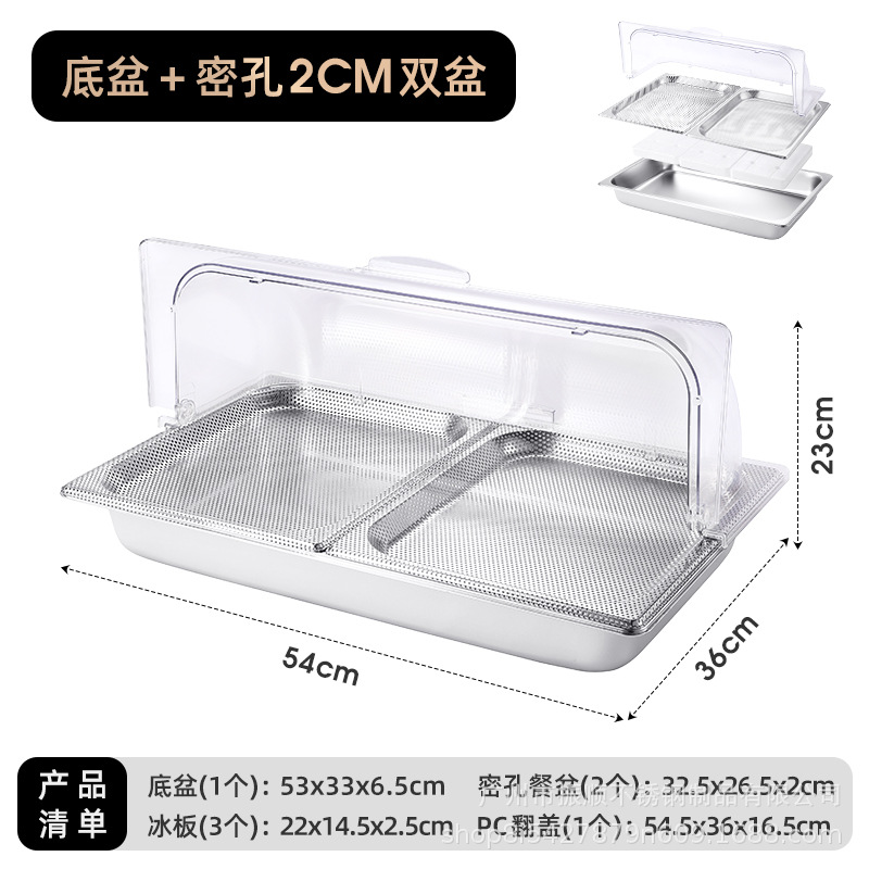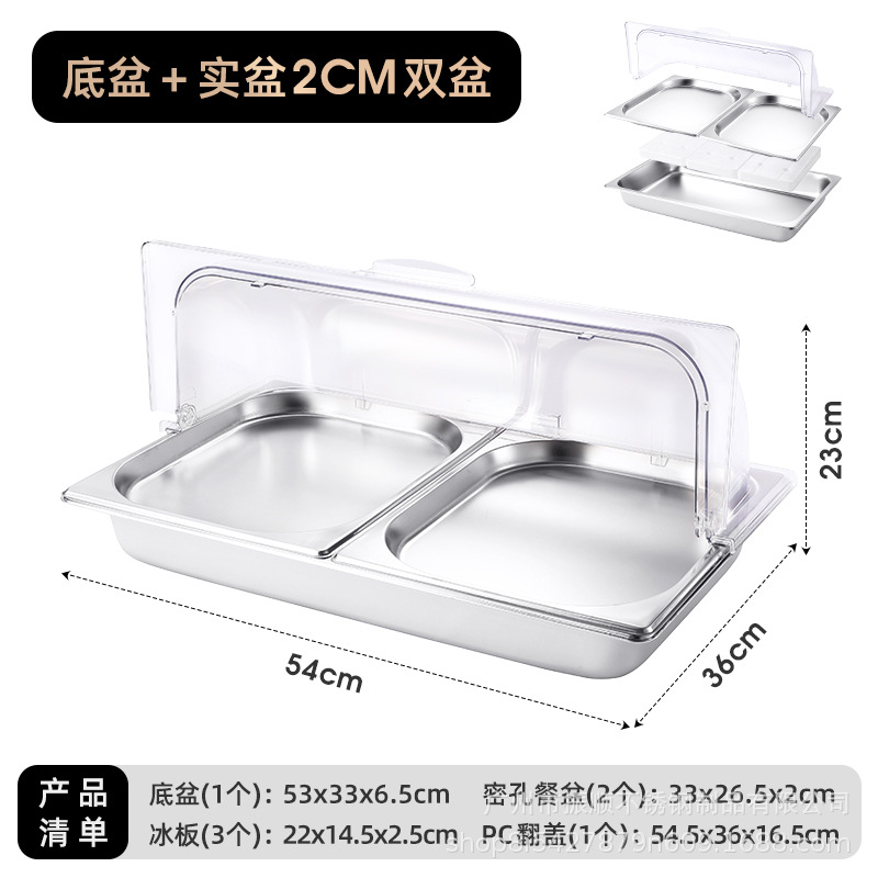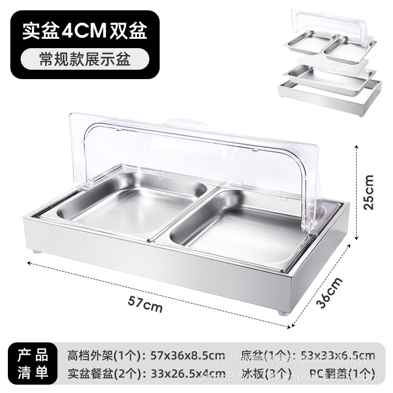 스테인레스 스틸 매리 네드 배수 트레이 호텔 캔틴 레스토랑 상업용 신선 유지 및 냉장 스시 디스플레이 뚜껑이있는 디스플레이 트레이