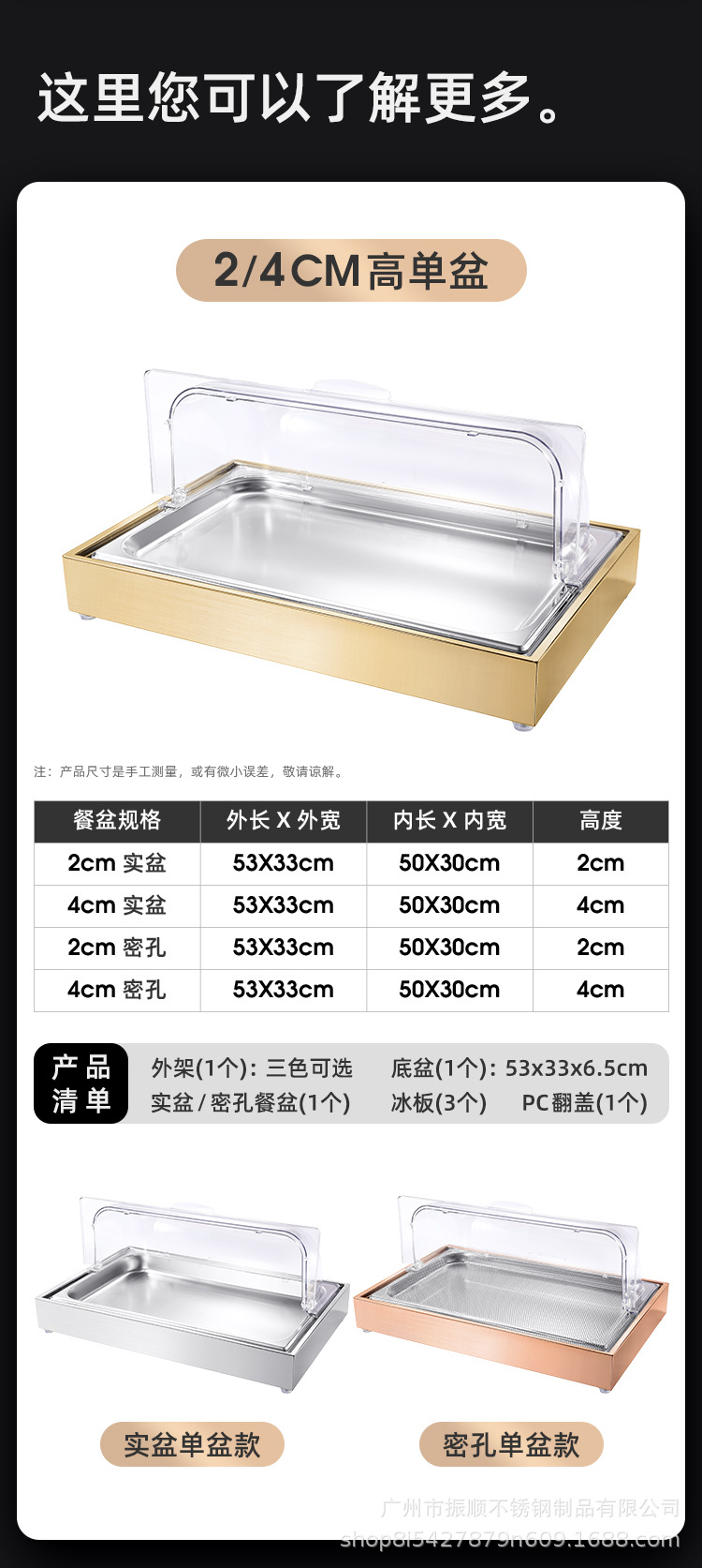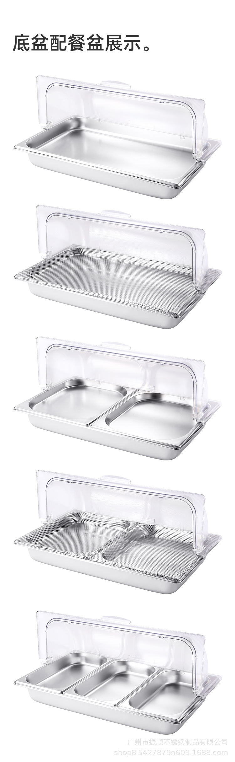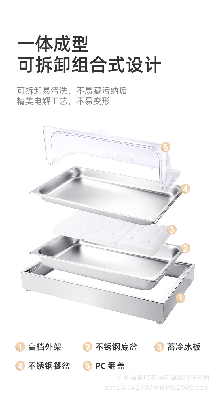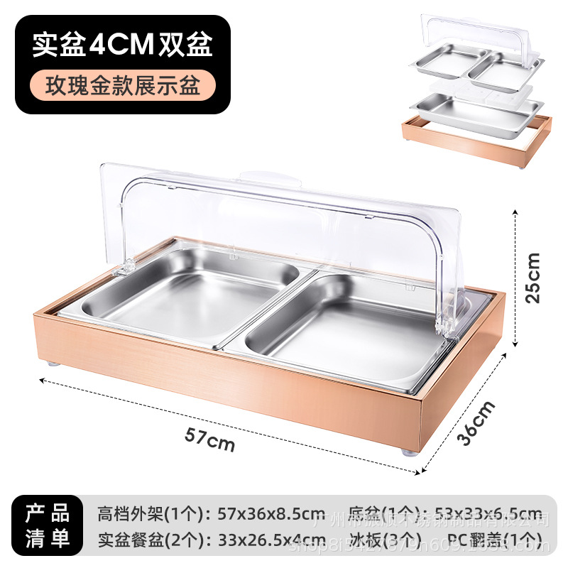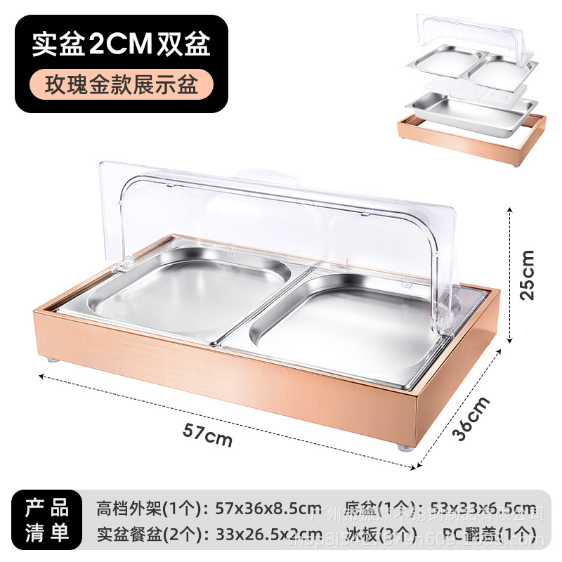 스테인레스 스틸 매리 네드 배수 트레이 호텔 캔틴 레스토랑 상업용 신선 유지 및 냉장 스시 디스플레이 뚜껑이있는 디스플레이 트레이