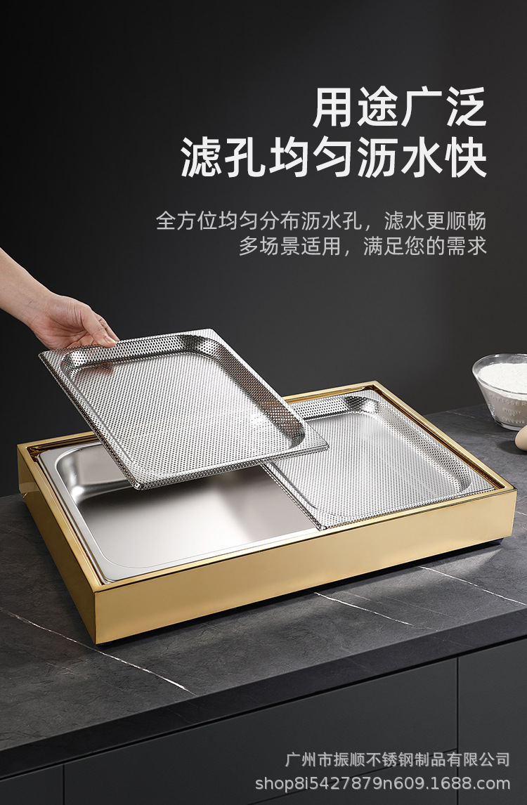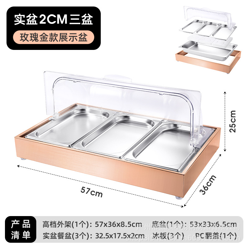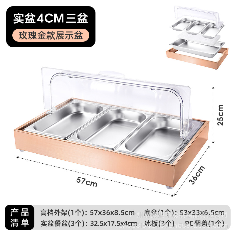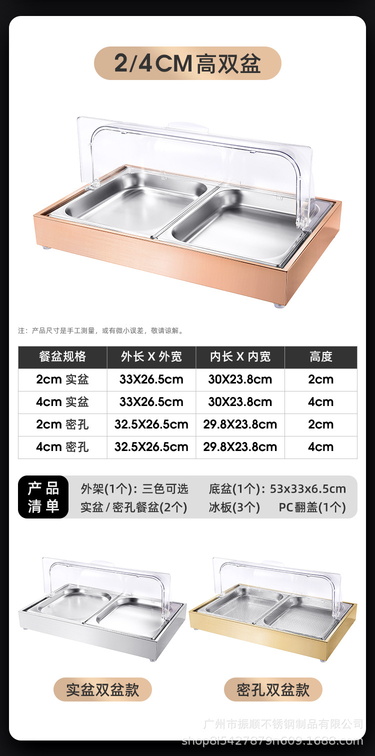 • 스테인레스 스틸 로즈 골드 외부 프레임 + 바닥 세면대 높이 6.5cm + 조밀한 구멍이 있는 이중 칸막이 내부 세면대 높이 4cm + 이중 플립 커버(얼음판 3개 포함)