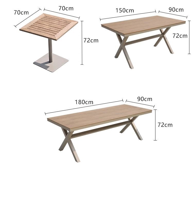 • 의자 6개 + 180X90CM 알루미늄 프레임 플라스틱 목재 긴 테이블
