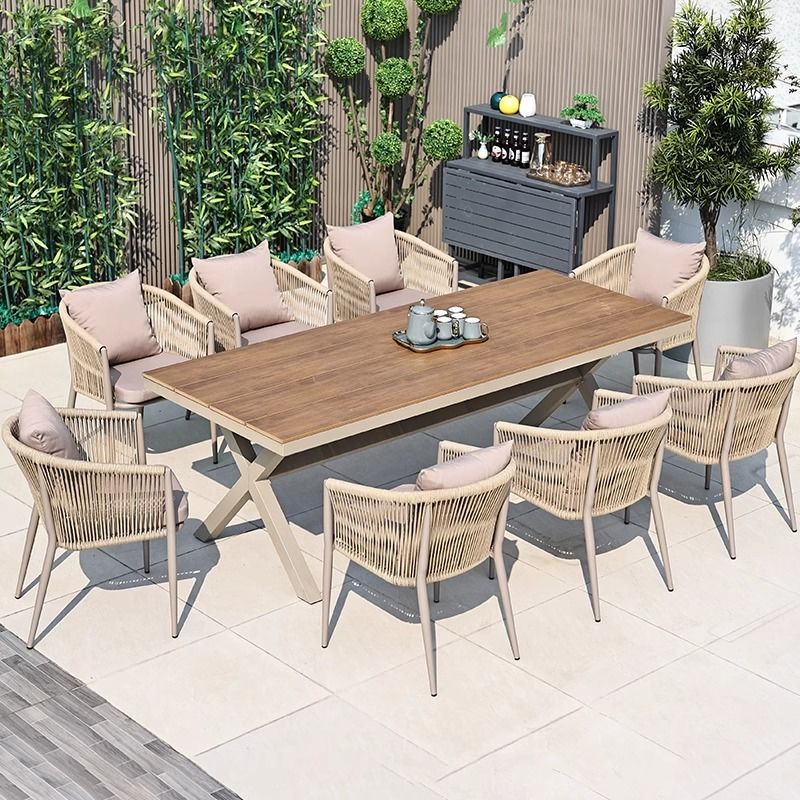 • 의자 8개 + 180X90CM 알루미늄 프레임 플라스틱 목재 긴 테이블