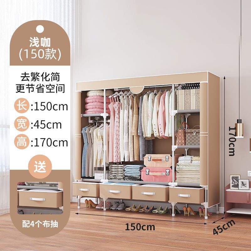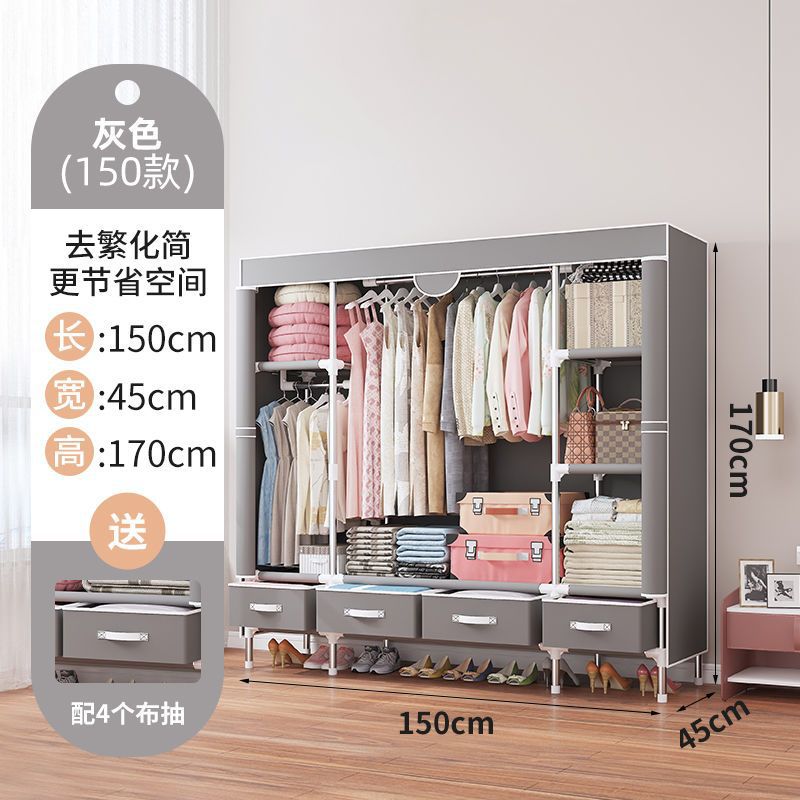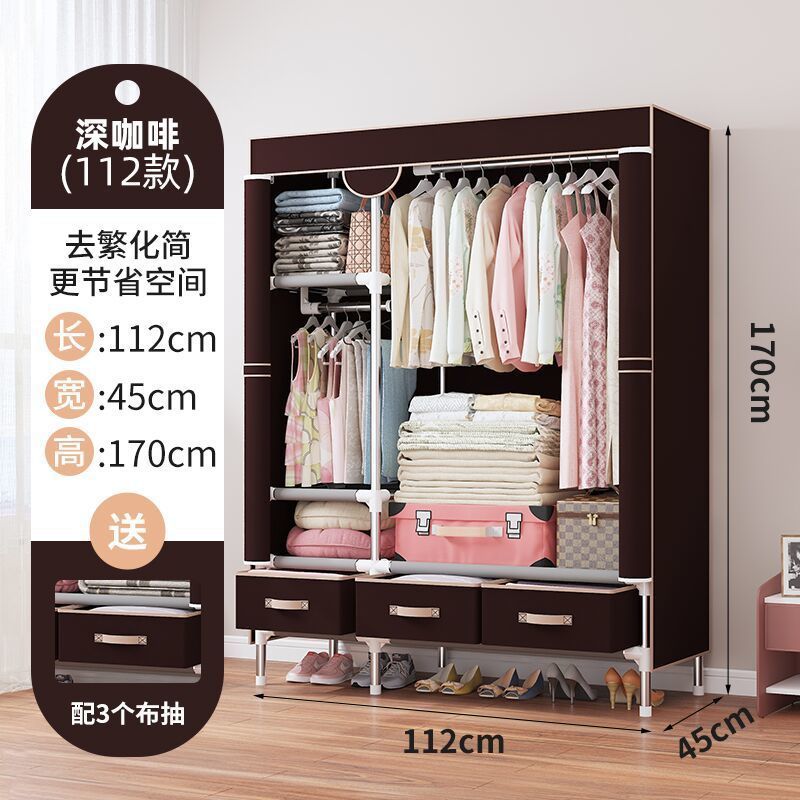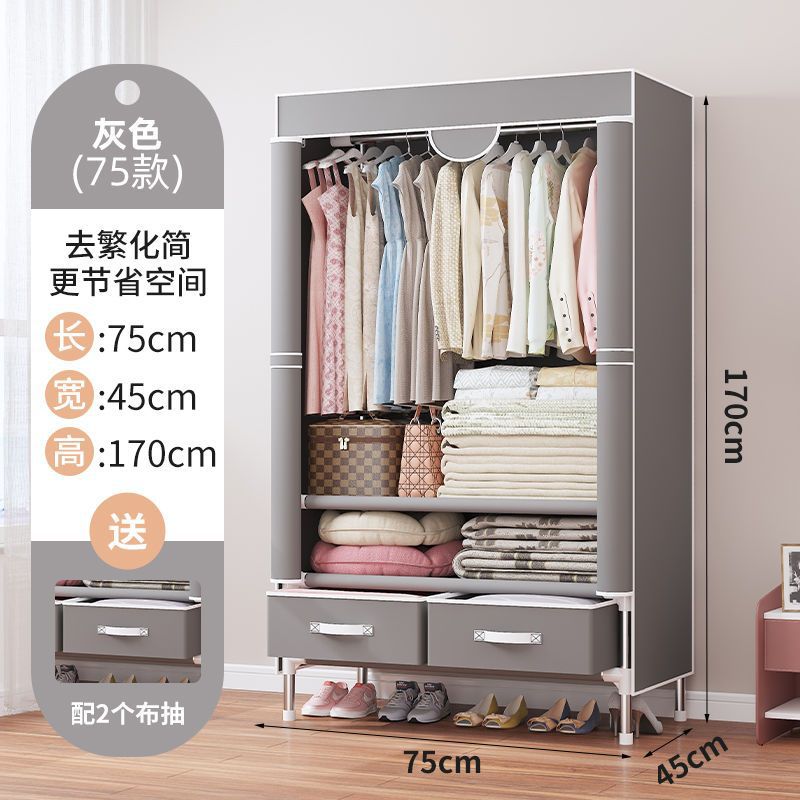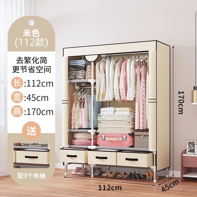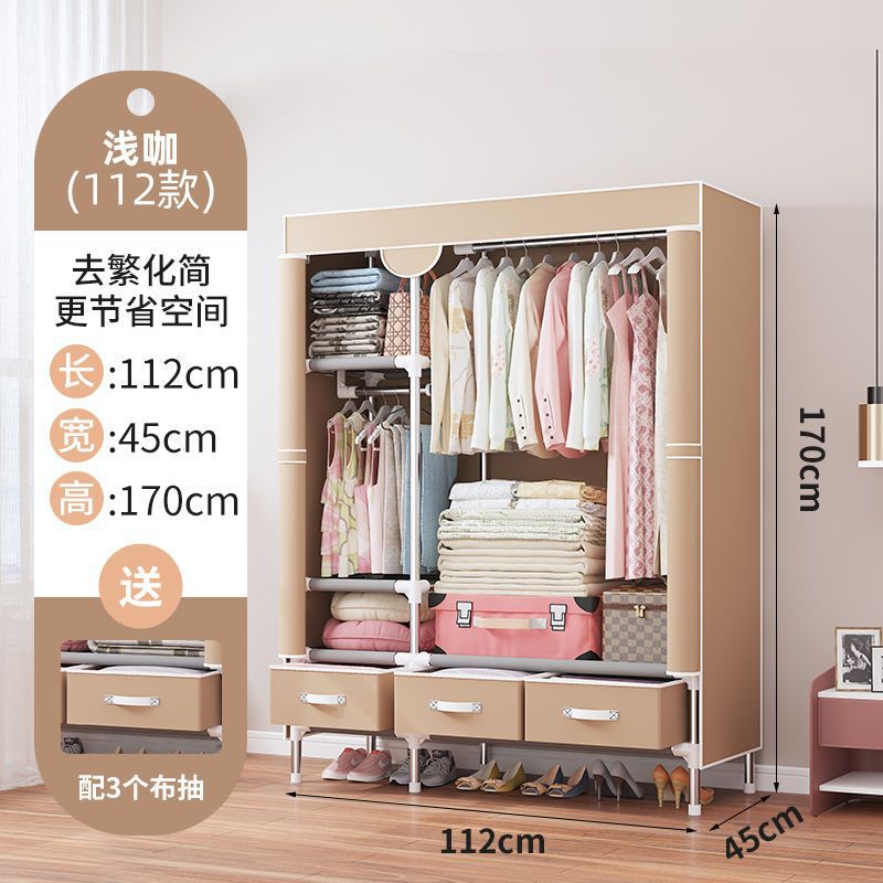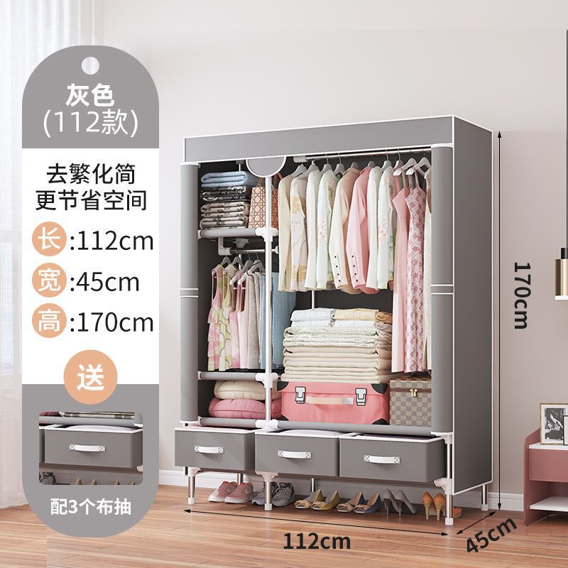 간단한 옷장 임대 집 홈 침실 현대적인 간단한 기숙사 보관 천 옷장 두껍고 강화되어 강하고 내구성이 뛰어납니다.스토어 가기