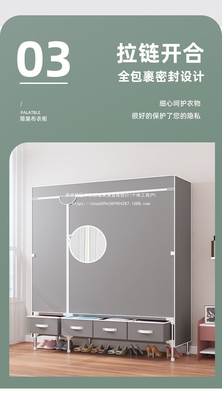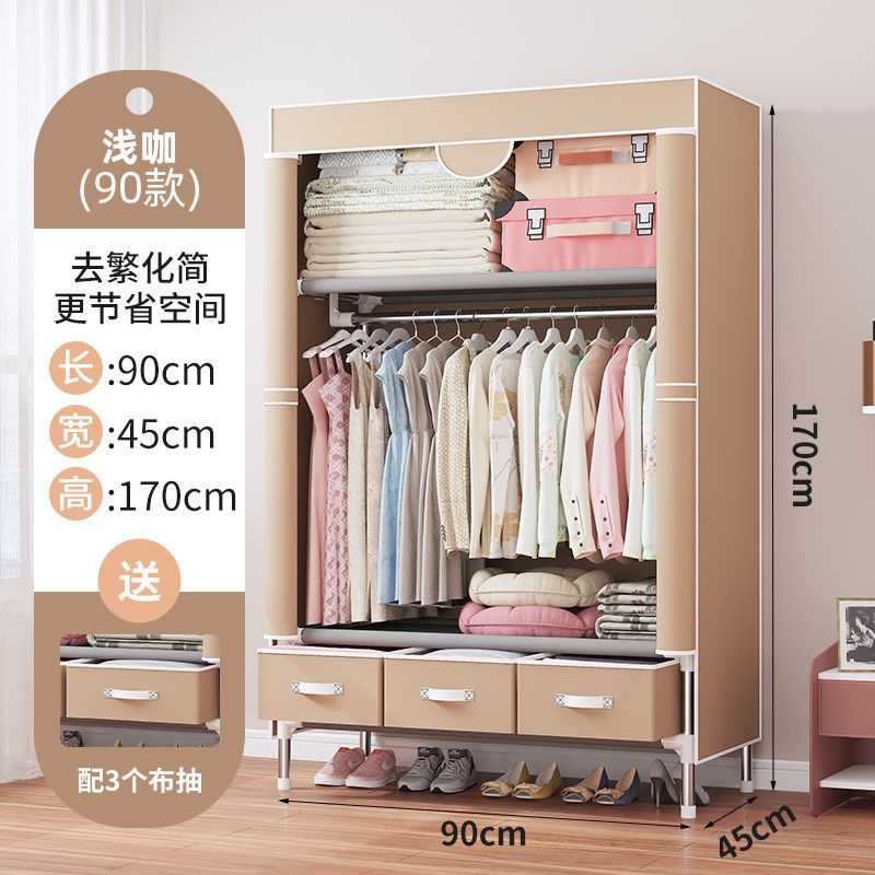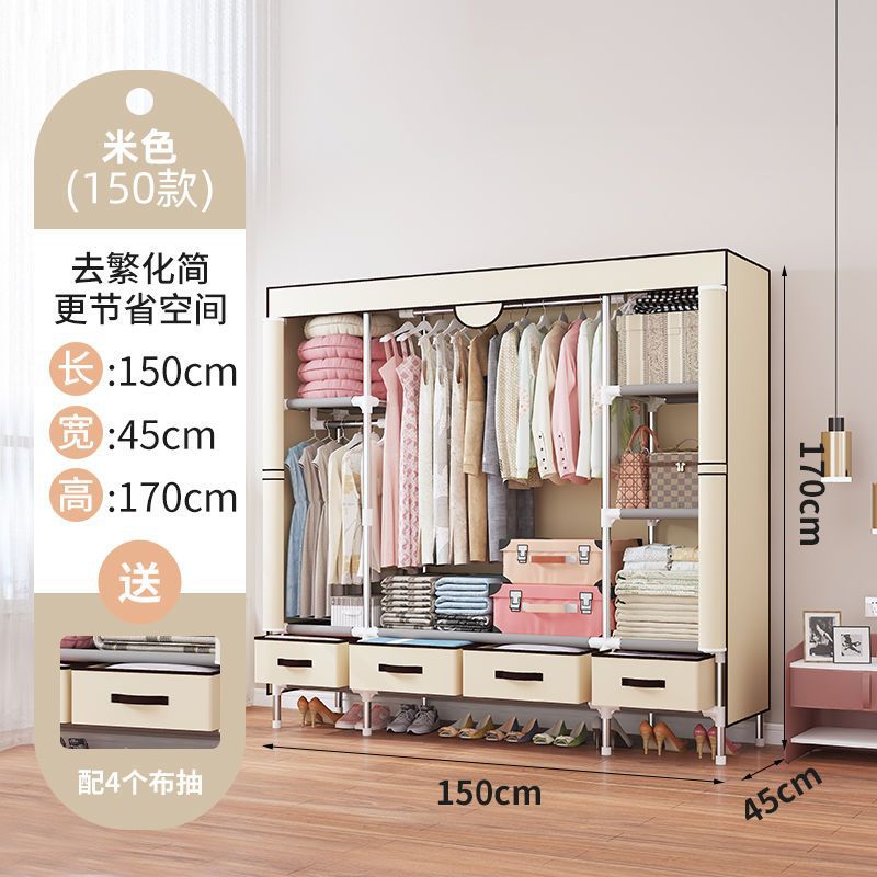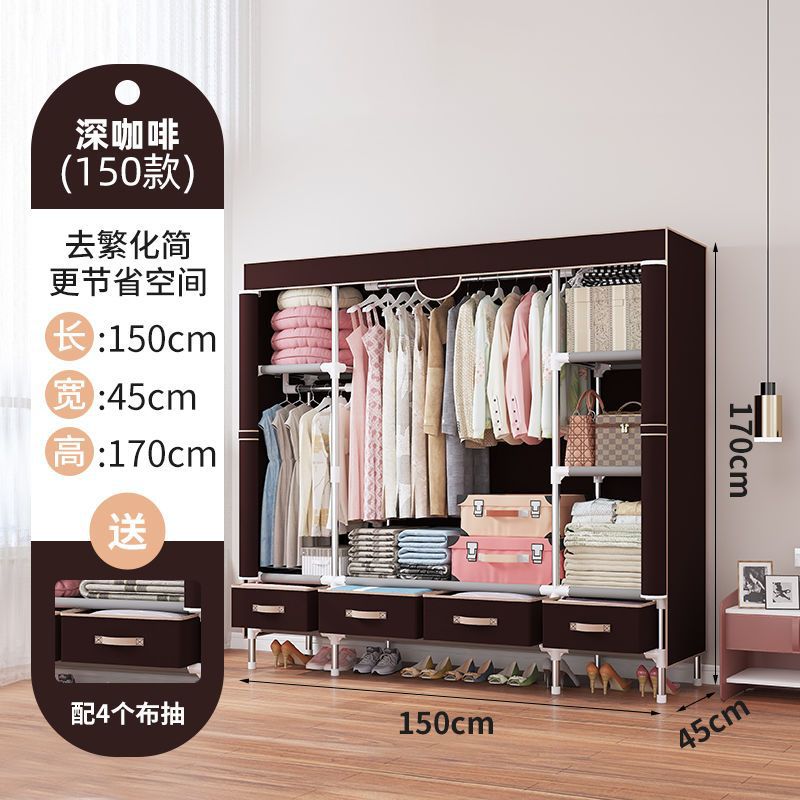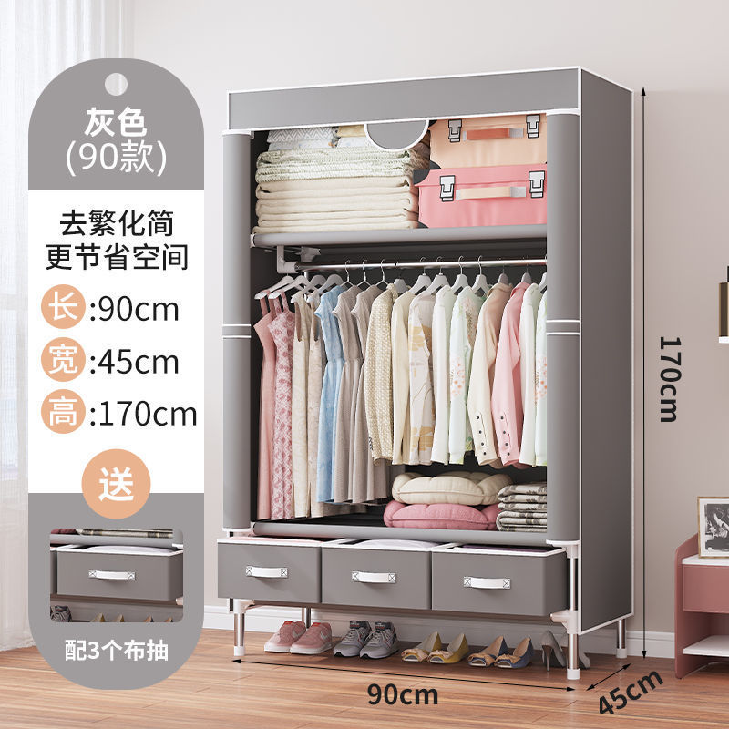 간단한 옷장 임대 집 홈 침실 현대적인 간단한 기숙사 보관 천 옷장 두껍고 강화되어 강하고 내구성이 뛰어납니다.스토어 가기