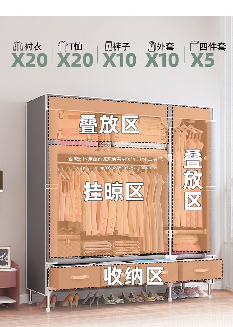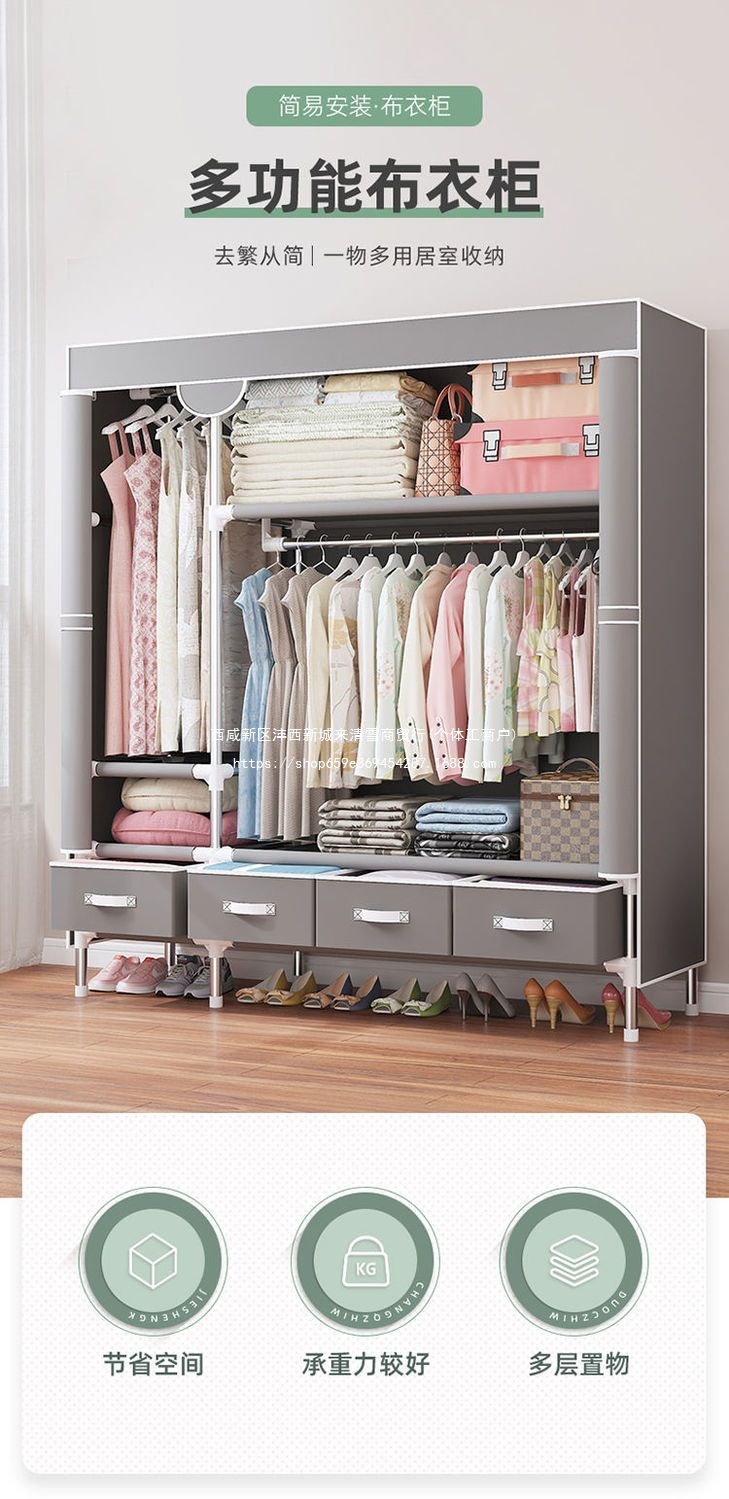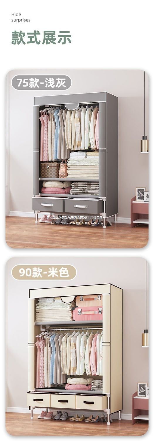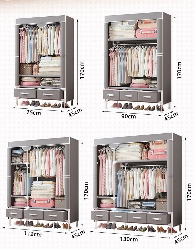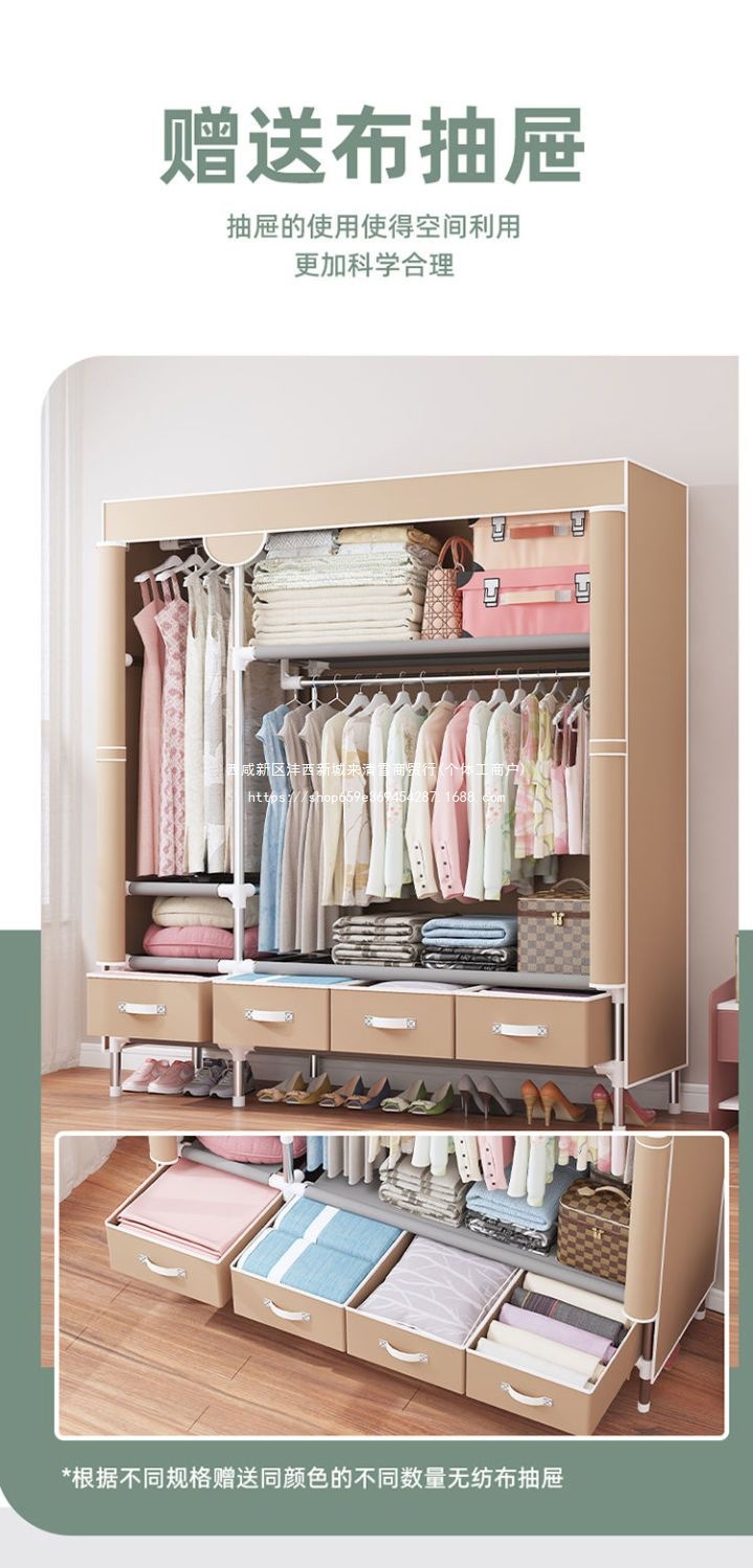 간단한 옷장 임대 집 홈 침실 현대적인 간단한 기숙사 보관 천 옷장 두껍고 강화되어 강하고 내구성이 뛰어납니다.스토어 가기