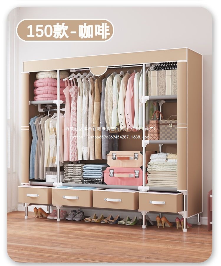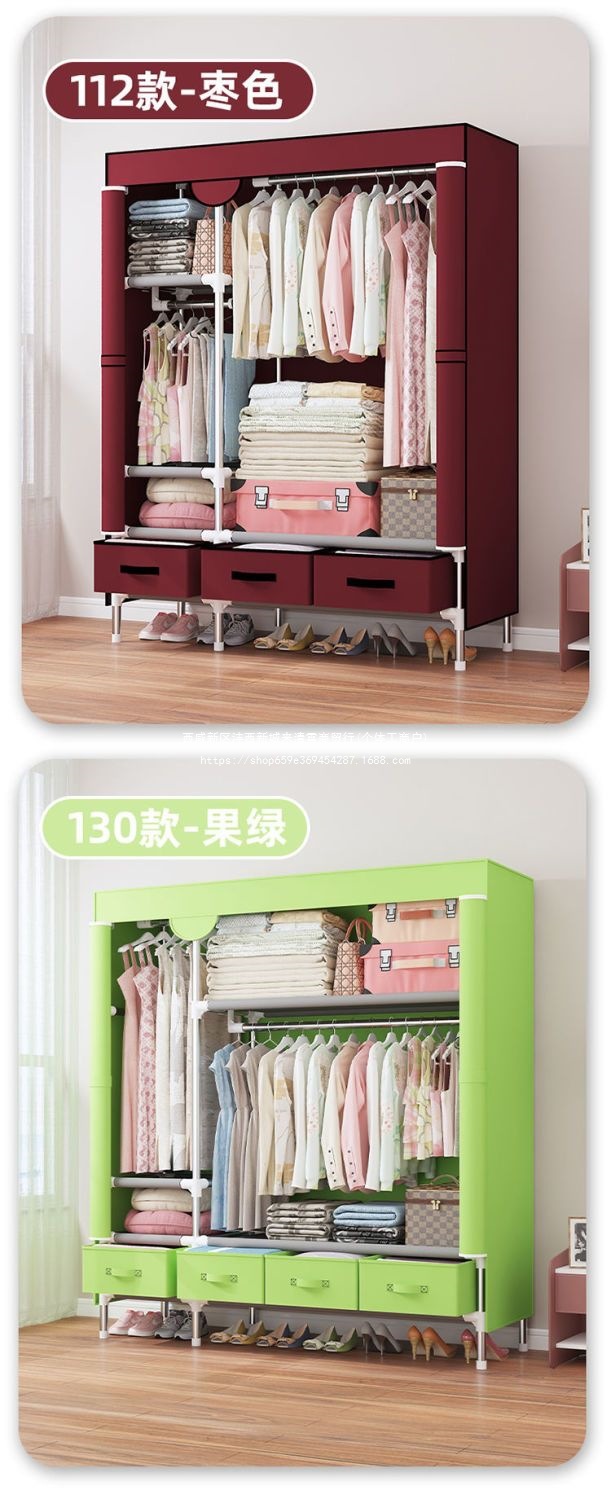 간단한 옷장 임대 집 홈 침실 현대적인 간단한 기숙사 보관 천 옷장 두껍고 강화되어 강하고 내구성이 뛰어납니다.