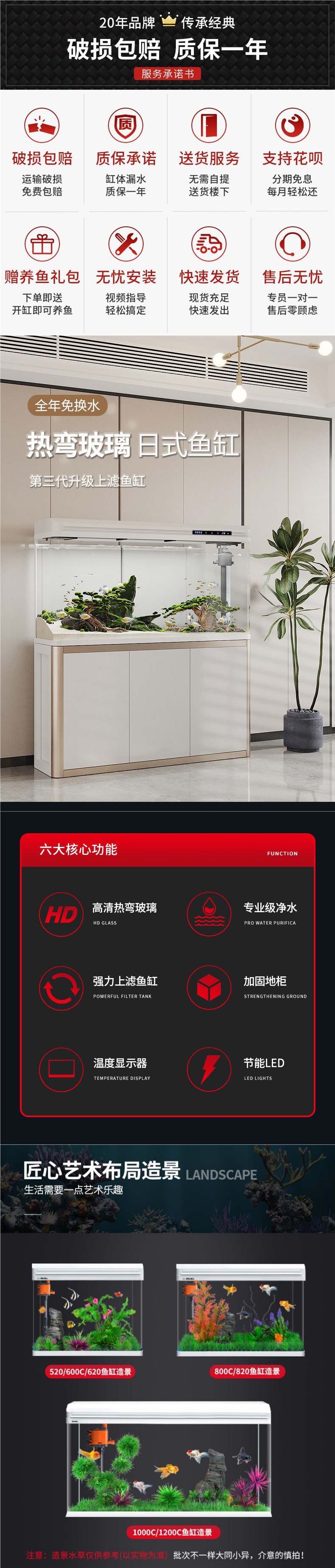 거실 수조, 중소형 가정용 수족관, 바닥부터 천장까지 이어지는 대형 생태 게으른 물을 갈아주지 않는 유리 금붕어 수조 캐비닛스토어 가기