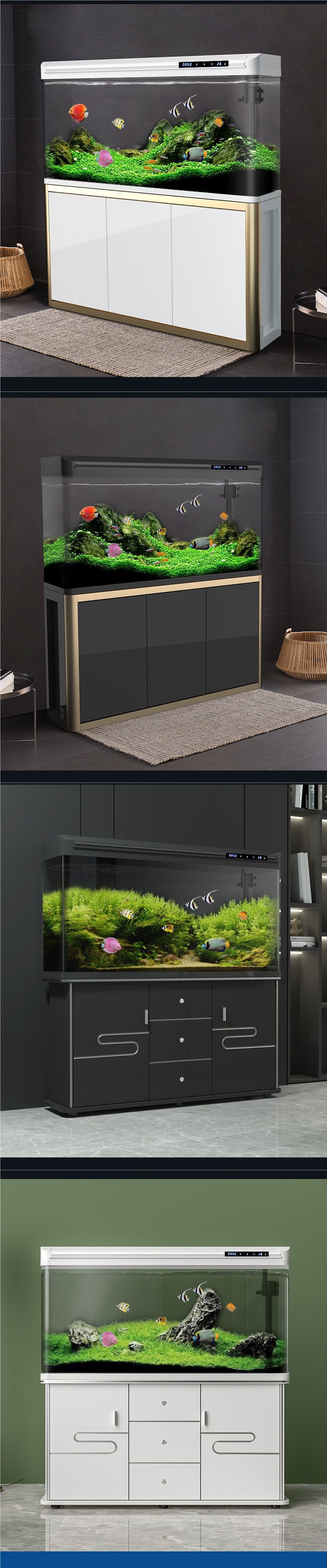 거실 수조, 중소형 가정용 수족관, 바닥부터 천장까지 이어지는 대형 생태 게으른 물을 갈아주지 않는 유리 금붕어 수조 캐비닛