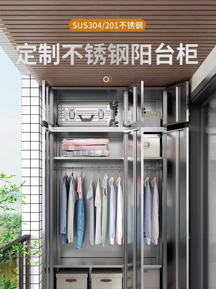 304 스테인레스 스틸 홈 발코니 캐비닛 방수 태양 방지 녹 방습 옷장 대용량 스토리지 스토리지 캐비닛