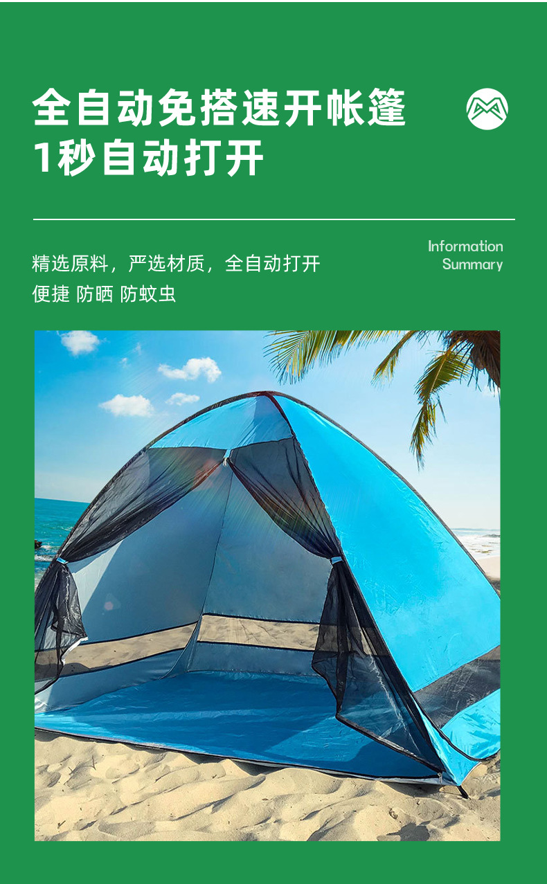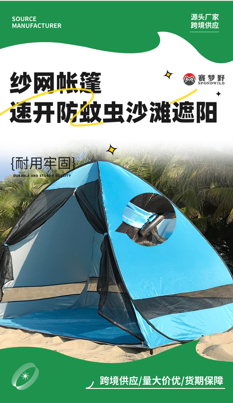 Amazon의 인기 있는 완전 자동 2초 개방형 모기 방지 해변 텐트, 자외선 차단 및 방수 기능이 있는 거즈 텐트스토어 가기