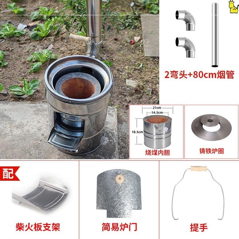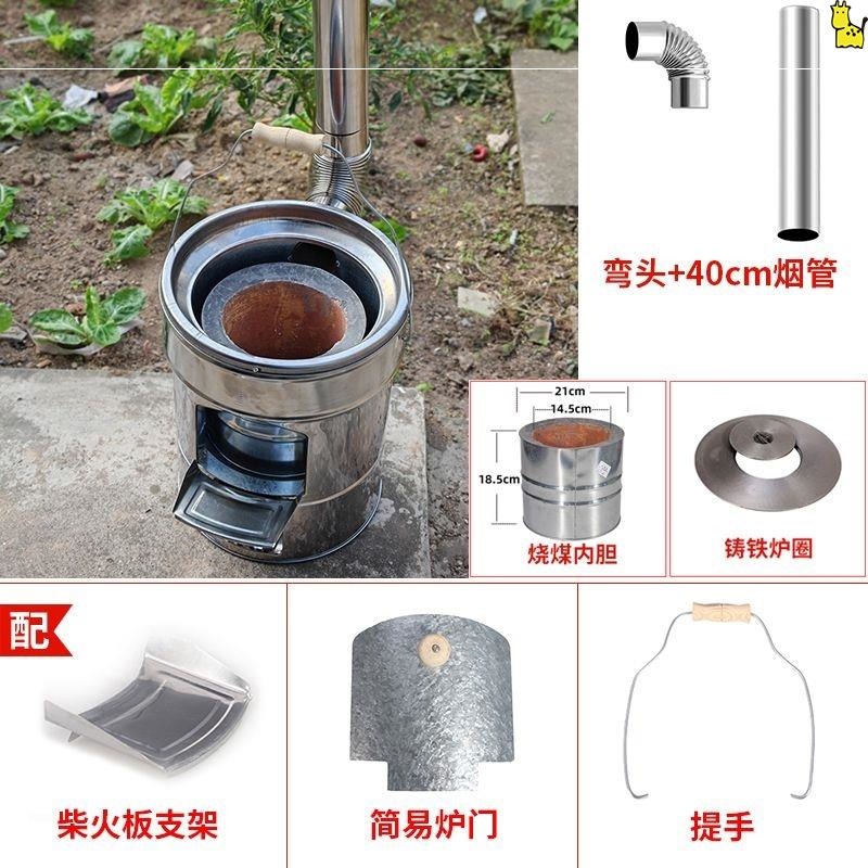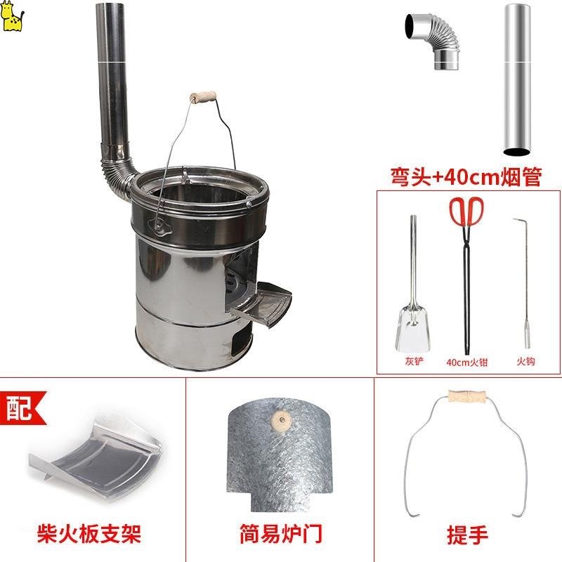 장작 난로 새로운 농촌 장작 난방 난로 장작 난로 바닥 냄비 난로 피크닉 야외 휴대용 스테인레스 스틸
